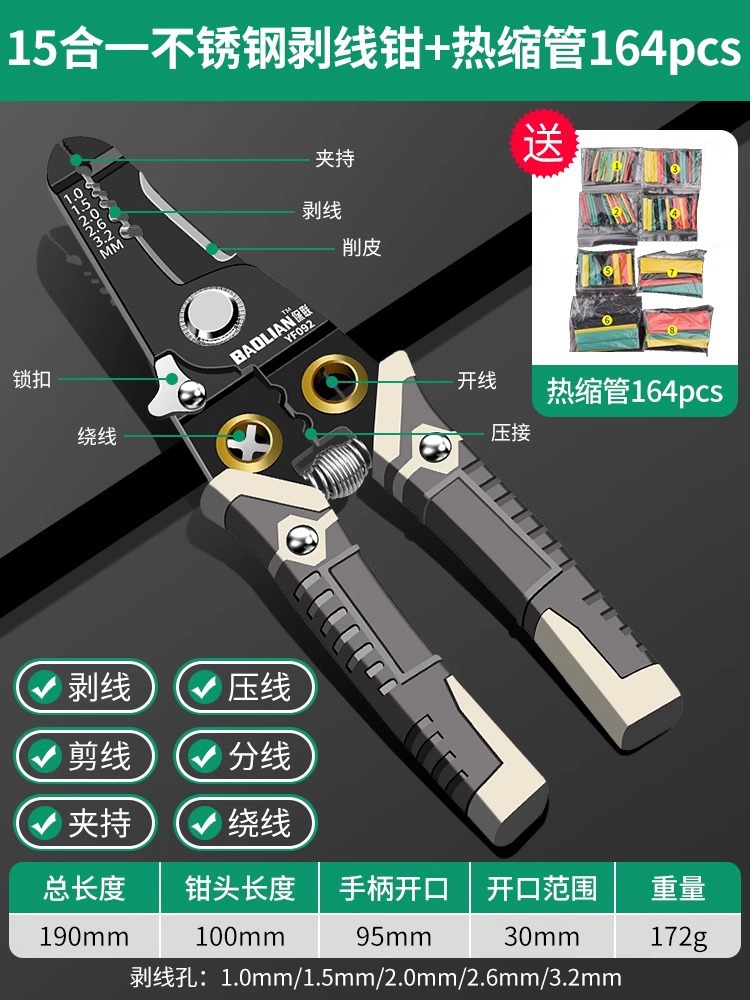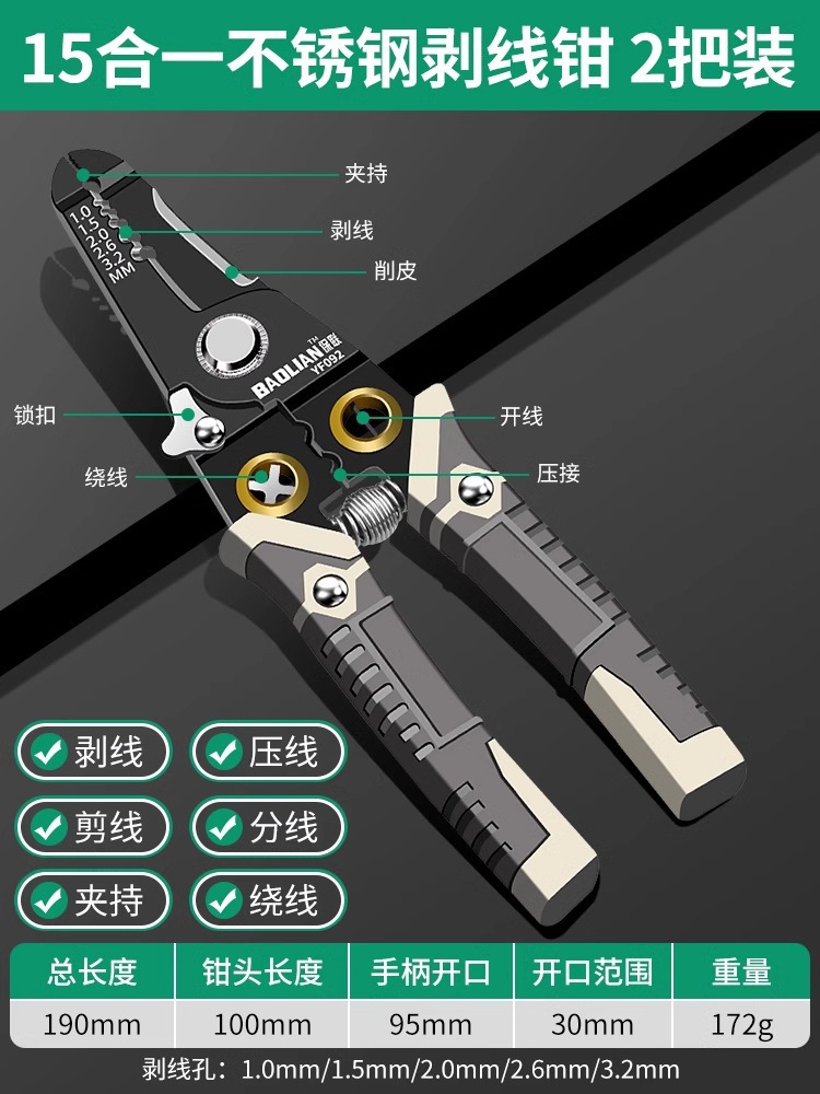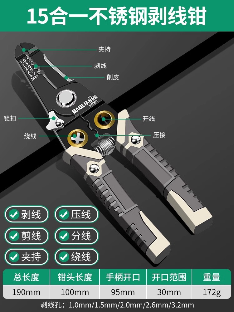 Baolian 다기능 와이어 스트리핑 펜치 전기 케이블 광섬유 프레스 와이어 전자 가위 특수 노동 절약 펜치스토어 가기