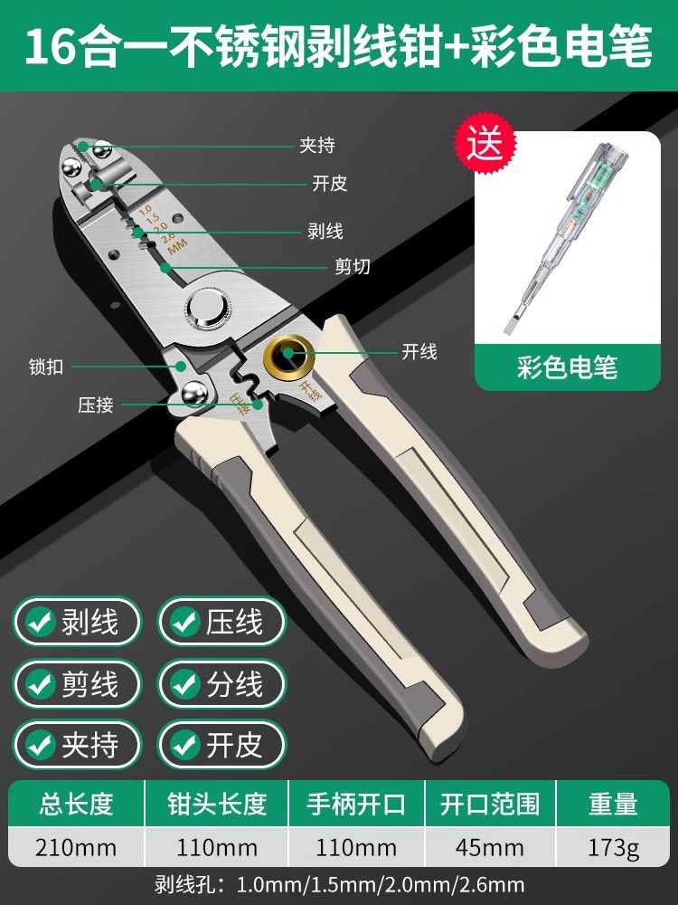 • [다기능] 16-in-1 스테인레스 스틸 와이어 스트리퍼 + 고광택 컬러 펜