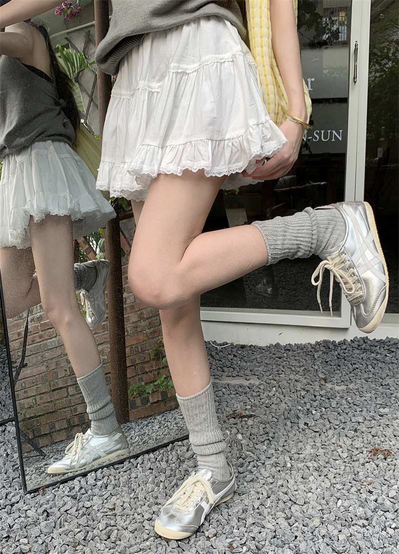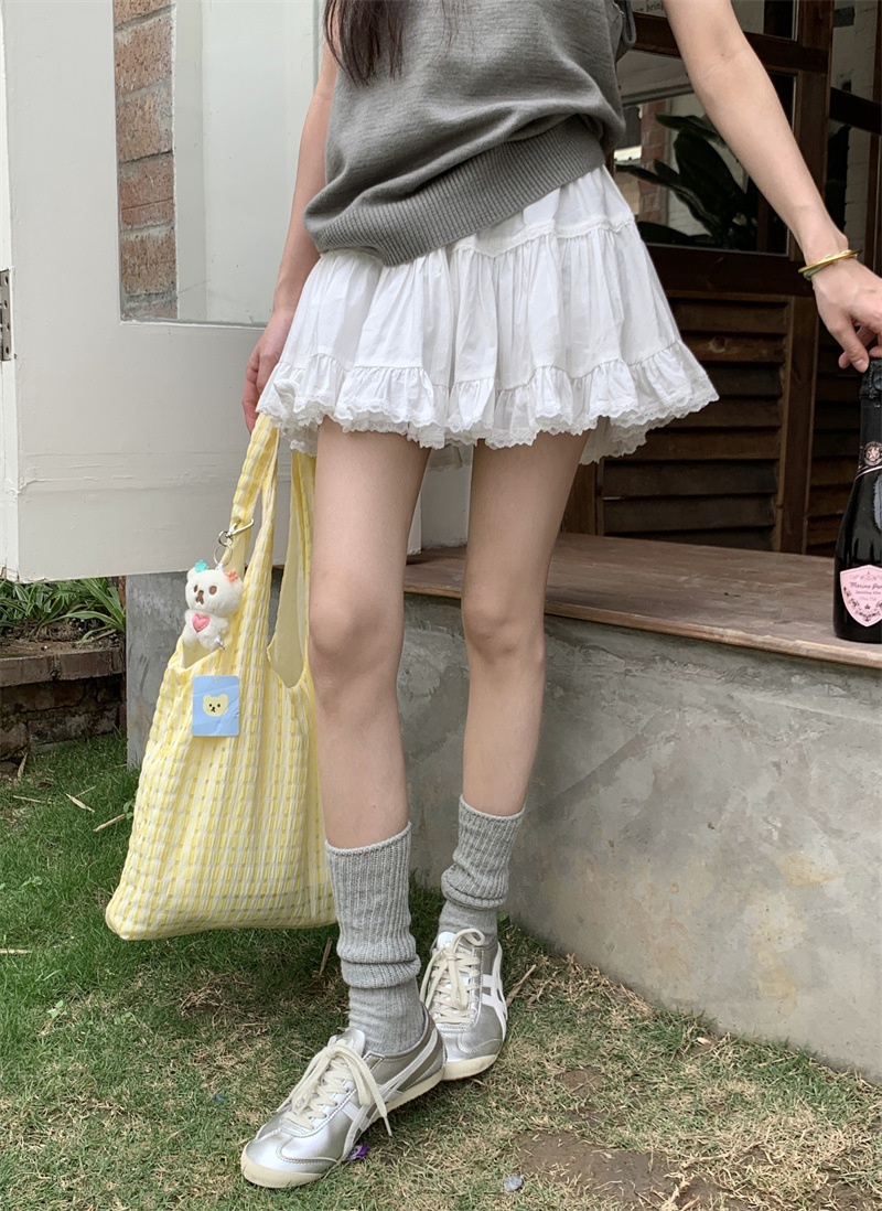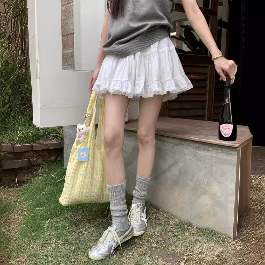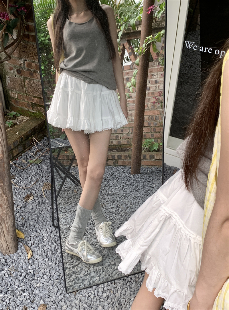 리얼 샷 스파이스 걸스 화이트 레이스 케이크 스커트 여자 여름 프랑스 발레 스타일 높은 허리 A 라인 스커트 짧은 치마