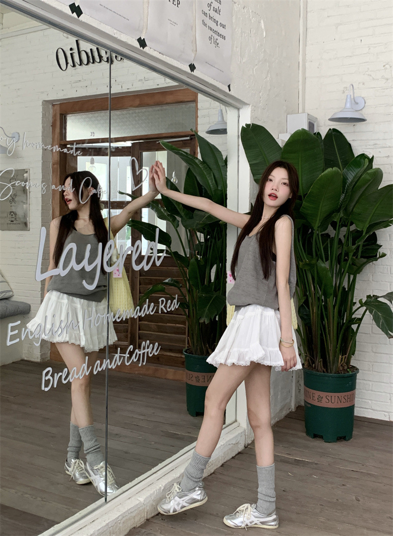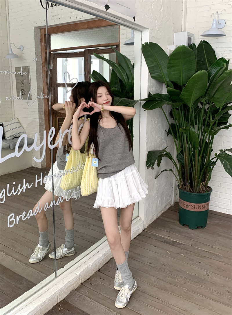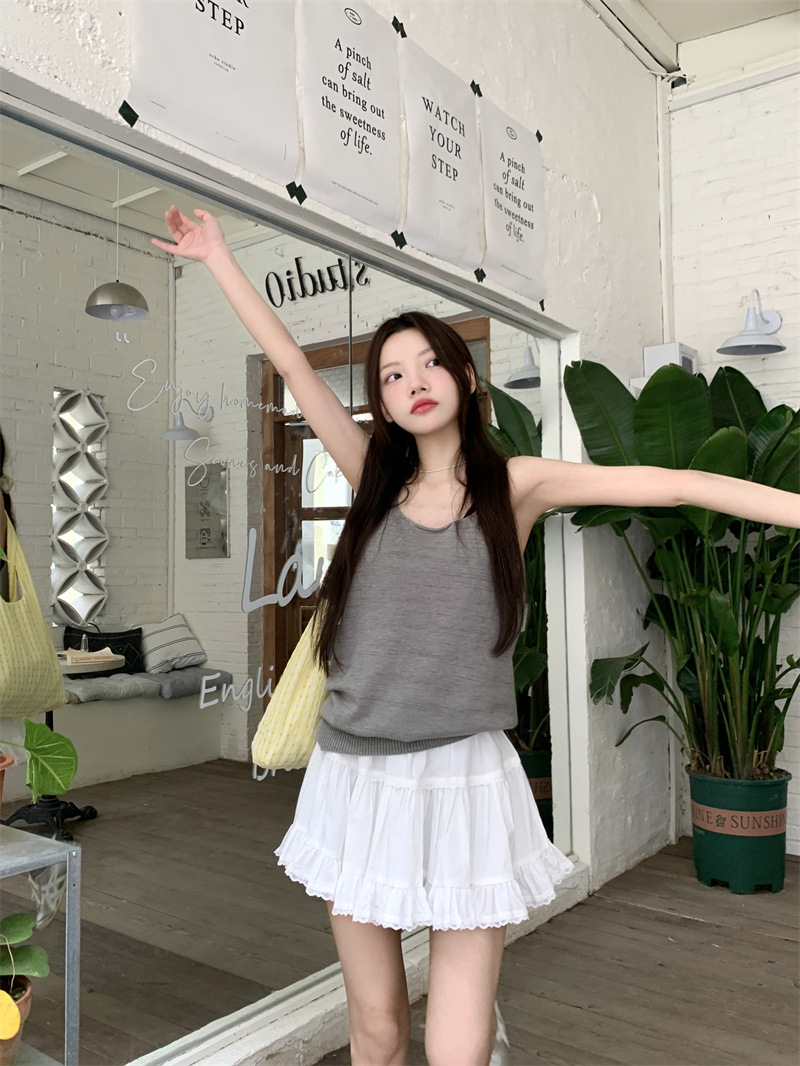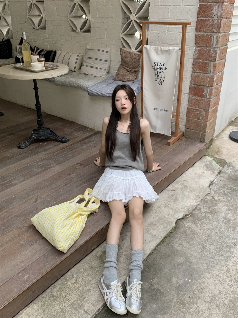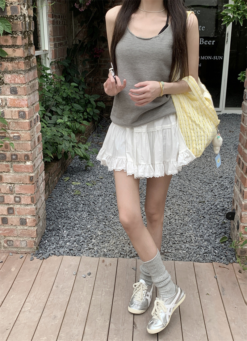 리얼 샷 스파이스 걸스 화이트 레이스 케이크 스커트 여자 여름 프랑스 발레 스타일 높은 허리 A 라인 스커트 짧은 치마