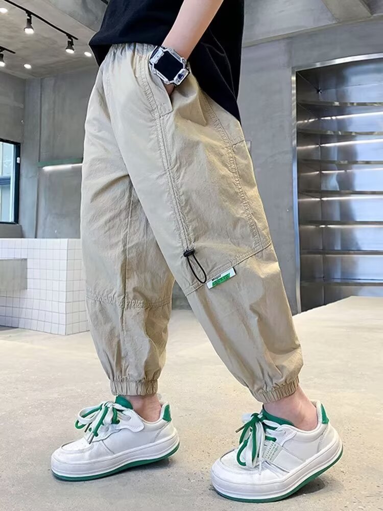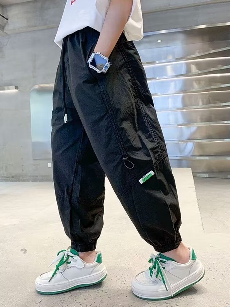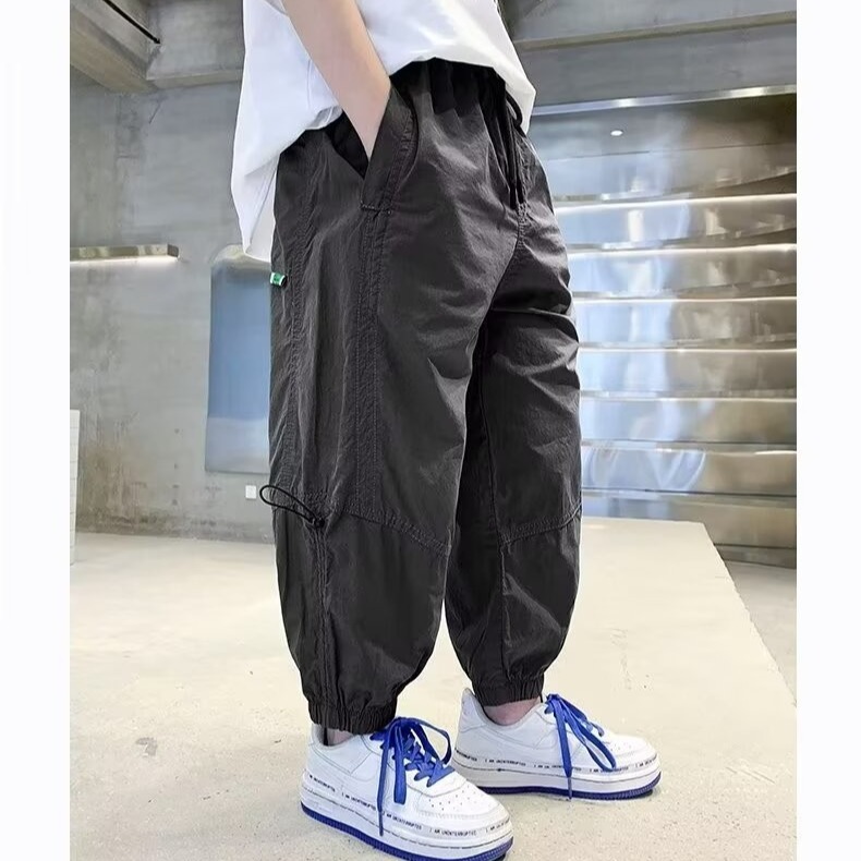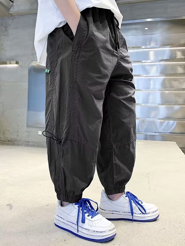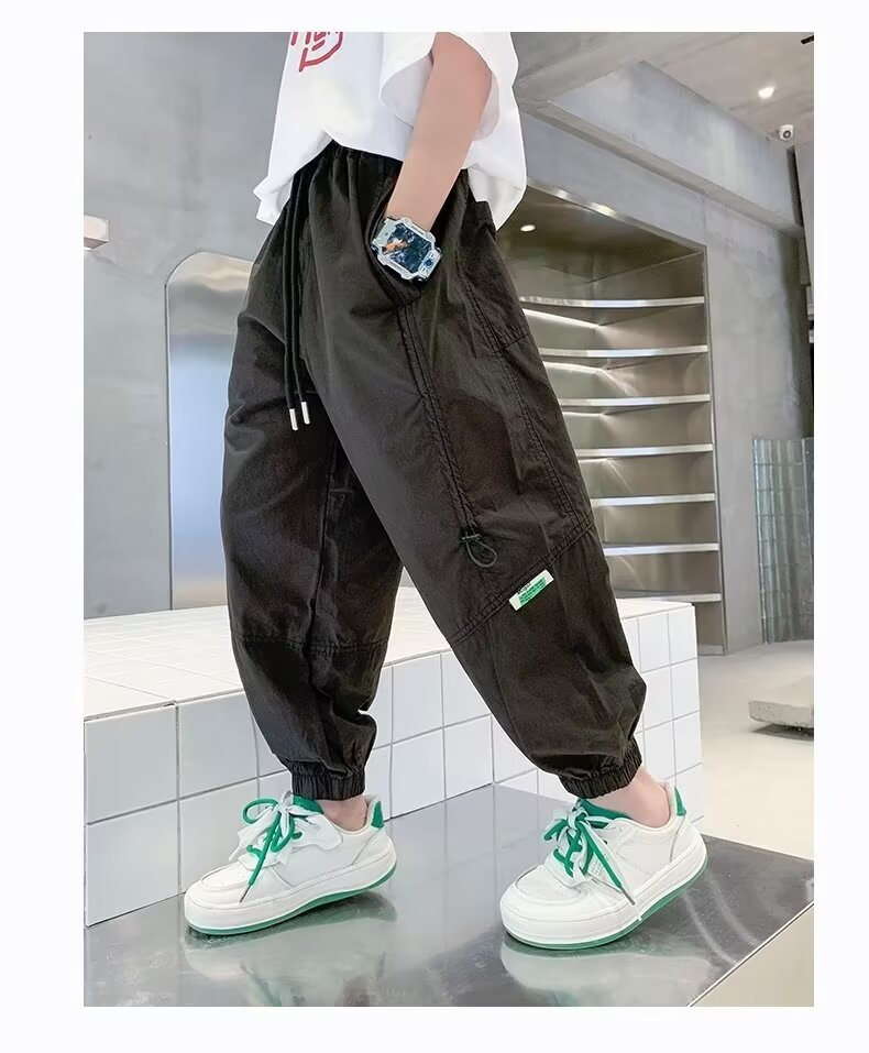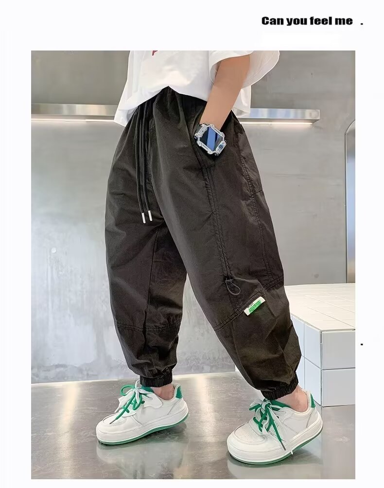 아동복 소년 가을 봄과 가을 캐주얼 바지 2024 새로운 바지 느슨한 유행 유행 유행 유행 소년 소녀를위한 바지스토어 가기