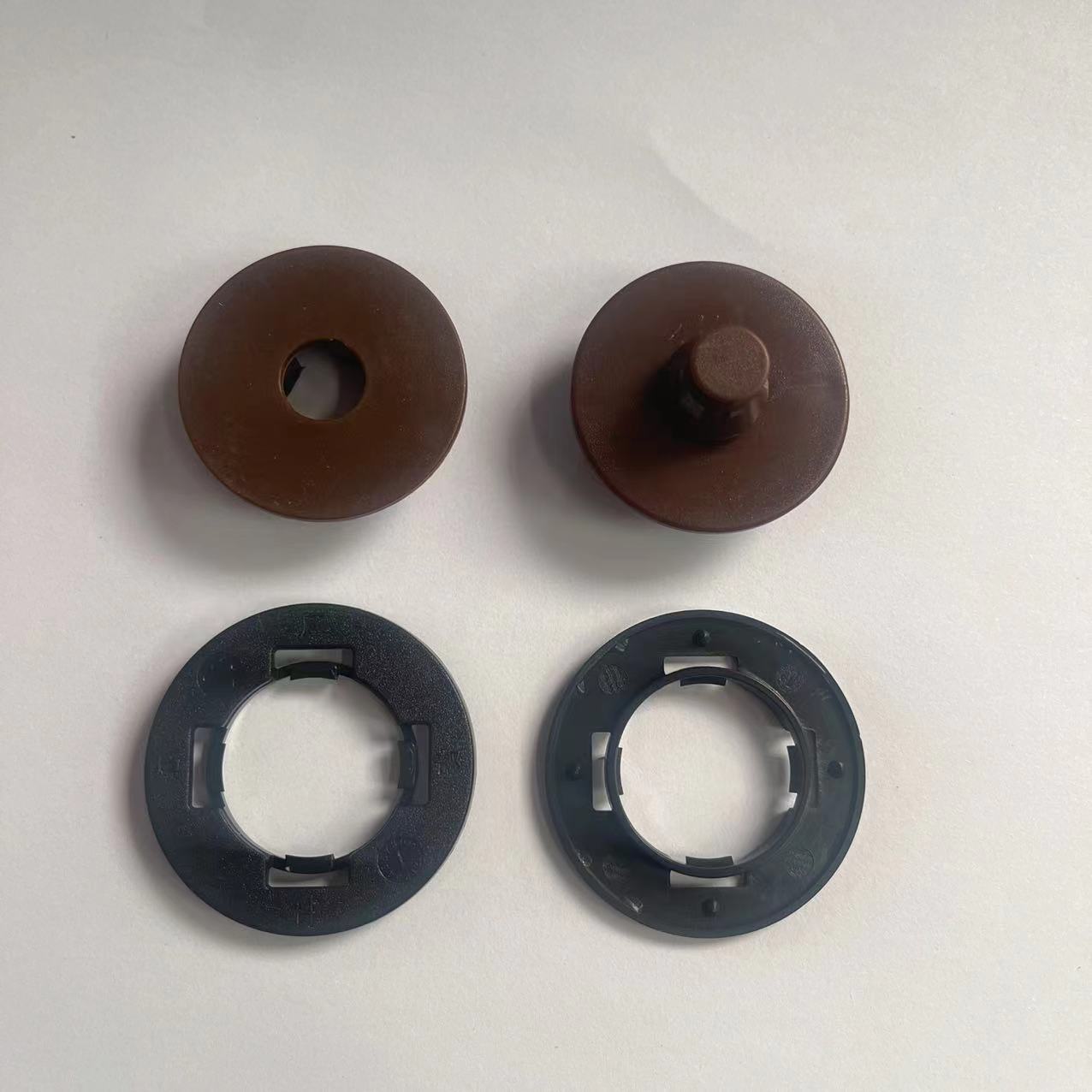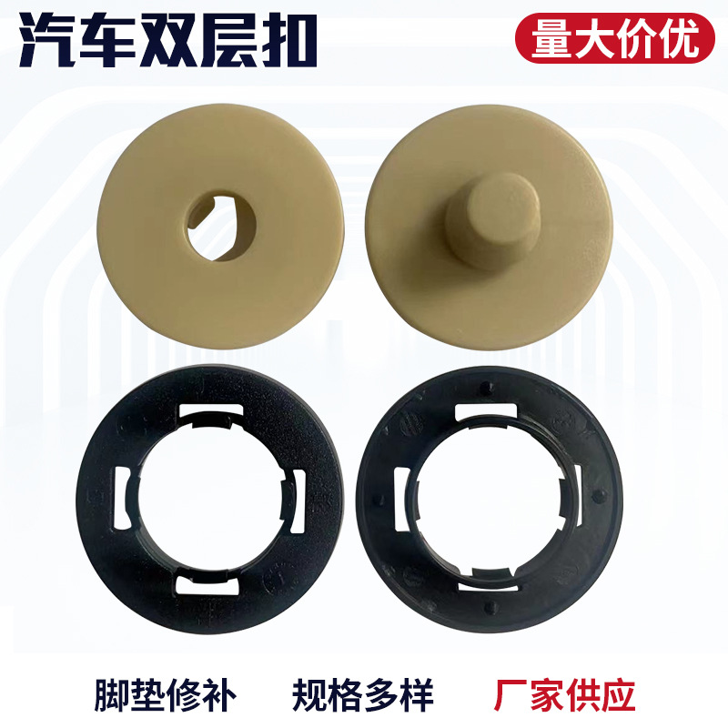 本厂生产和销售 汽车脚垫后备箱垫拼接和制作所用的塑料双层扣,纯铜双层扣 金属双层扣  拼接条 皮革包边条 织带 边扣侧扣 金属接头扣 踏皮踏板 水洗标 魔术贴 缝纫机线 开孔器等 品种多样!
