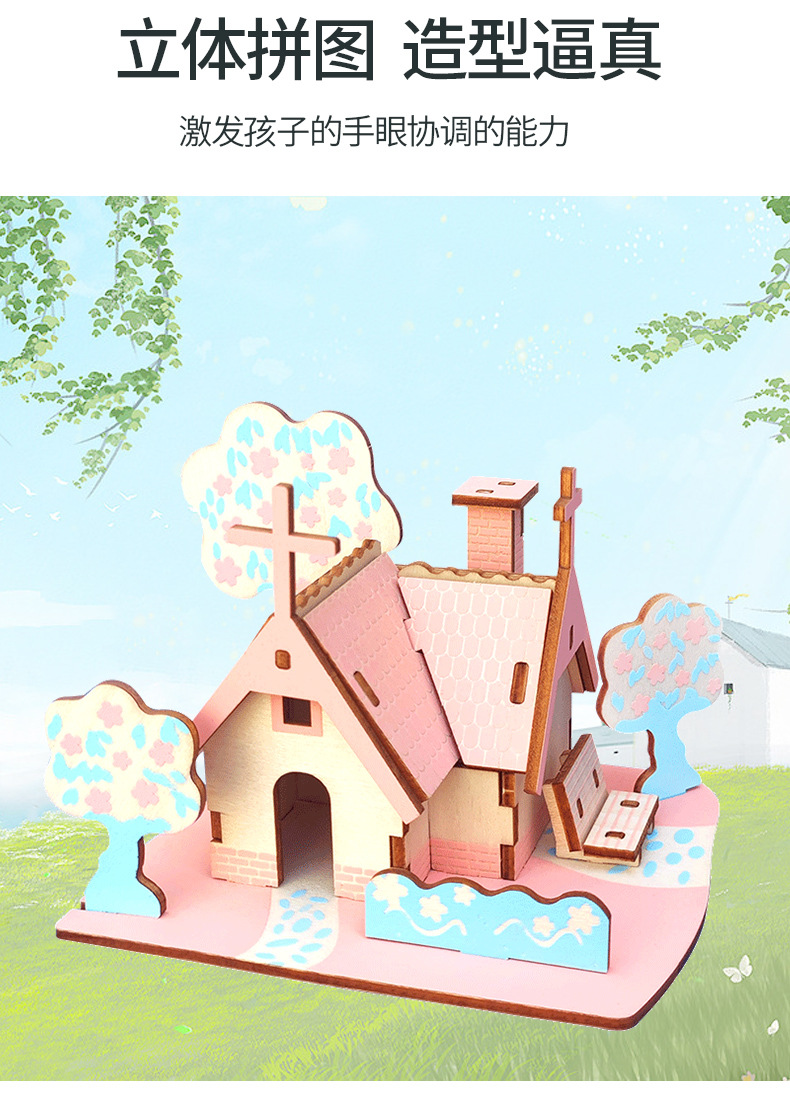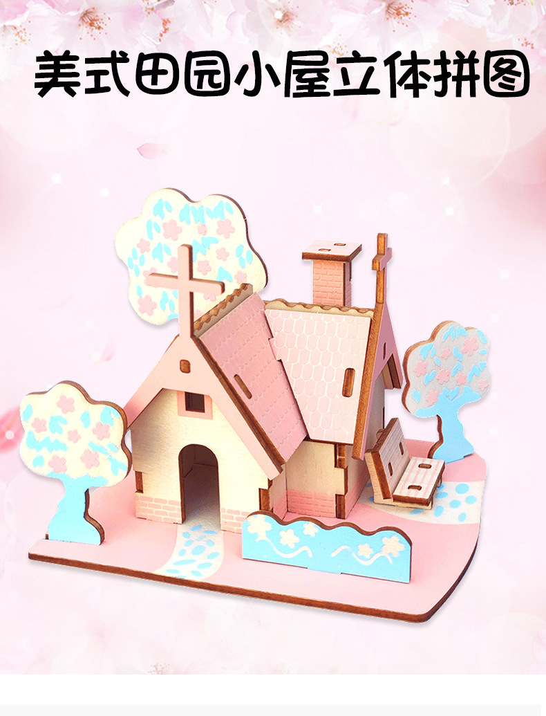 미국 목가적 인 캐빈 어린이 나무 퍼즐 3d 모델 장난감 소년과 소녀 노동자 선물 스톨 도매스토어 가기