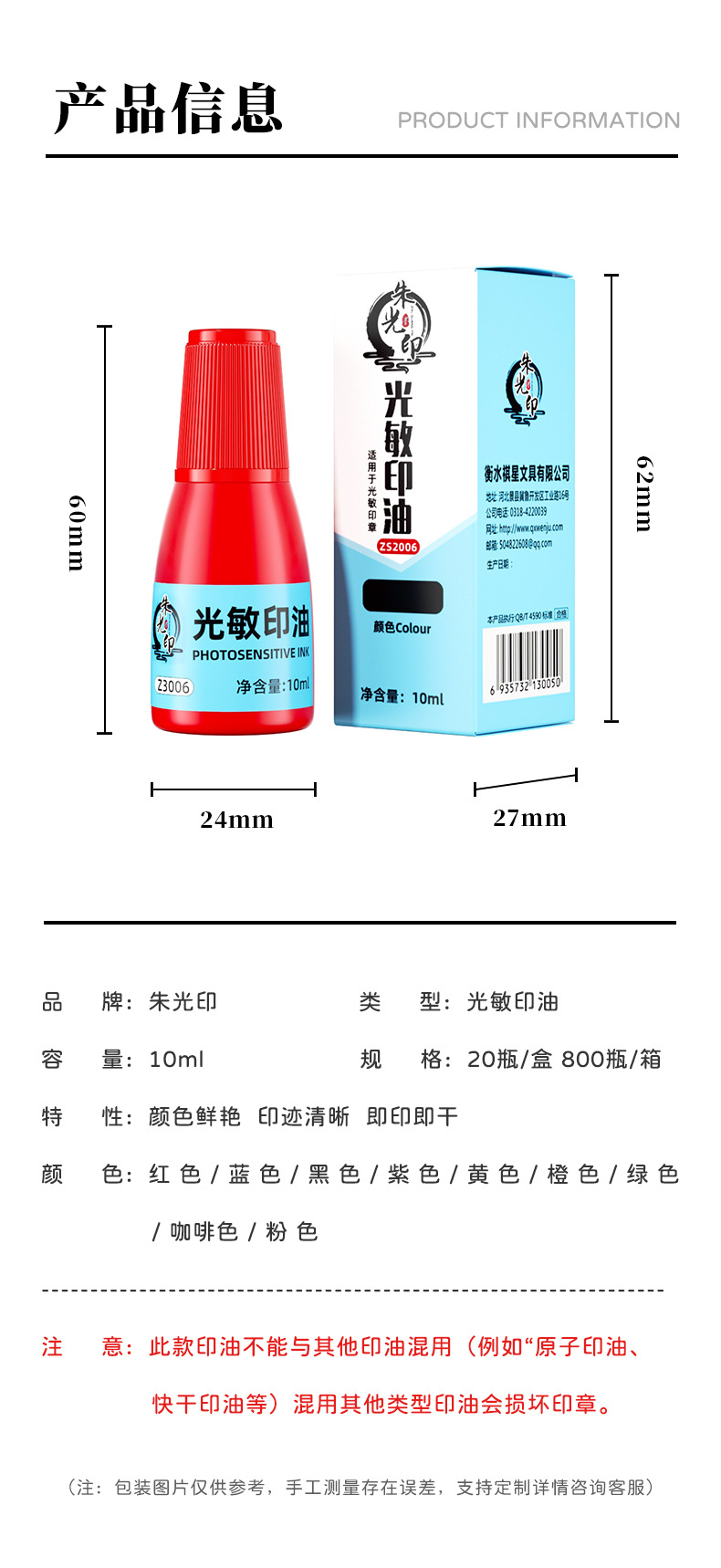 [Zhu Guangyin] Qixing 10ml 감광성 씰 오일 컬러 태양 컬러 빠른 건조 보충 잉크 감광성 씰 소모품