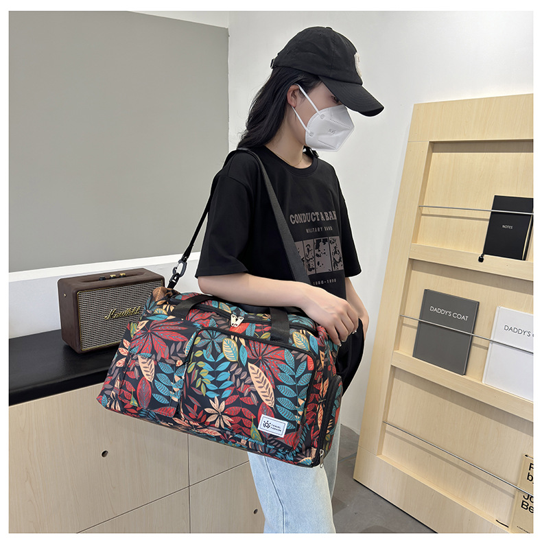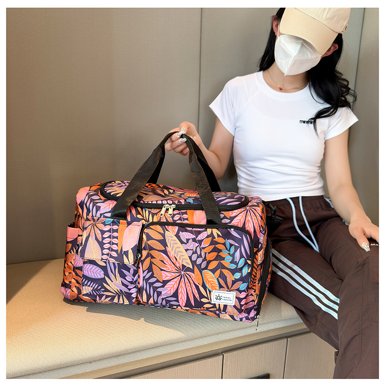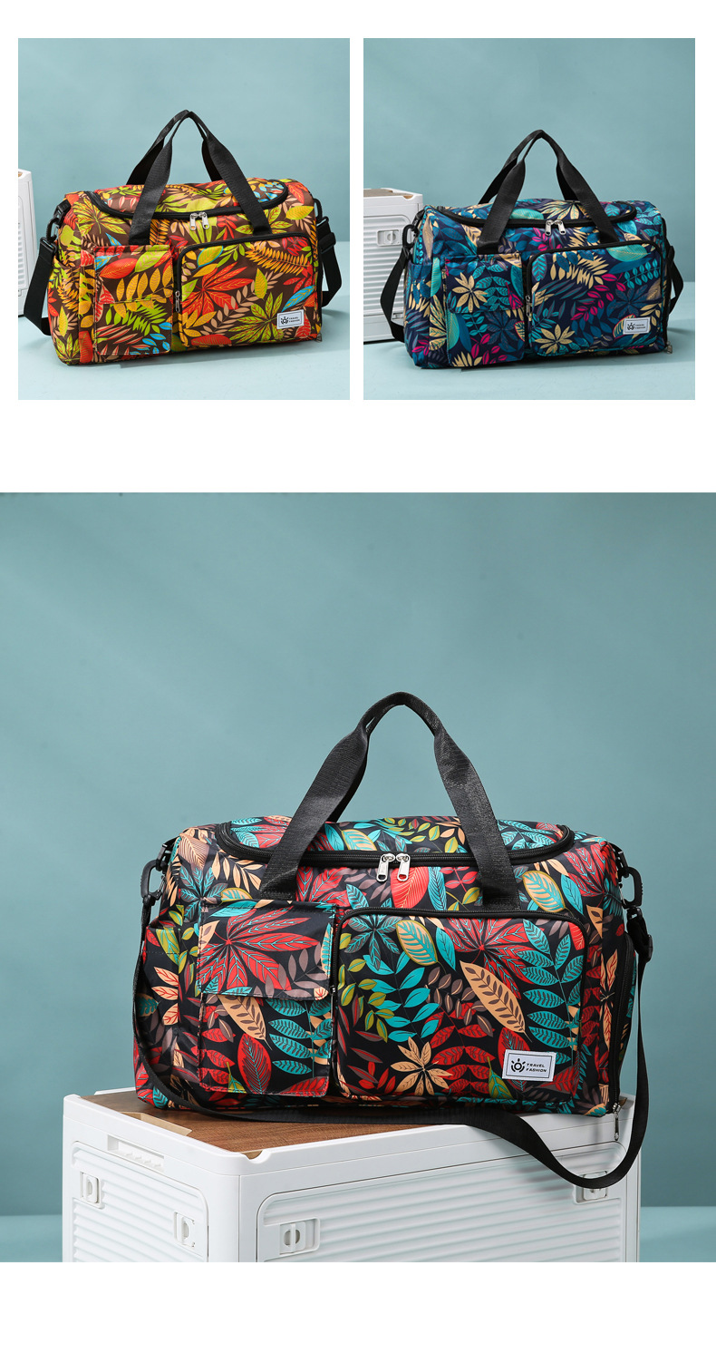 단거리 여행 가방 대용량 잎 인쇄 캐주얼 수하물 가방 여성 스포츠 피트니스 가방 건조하고 젖은 별도의 수영 가방