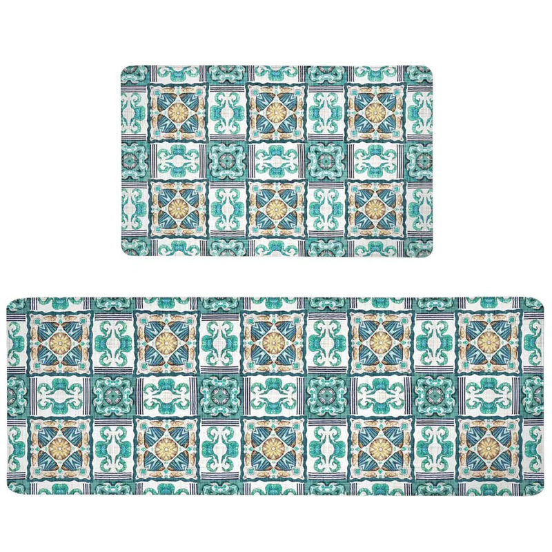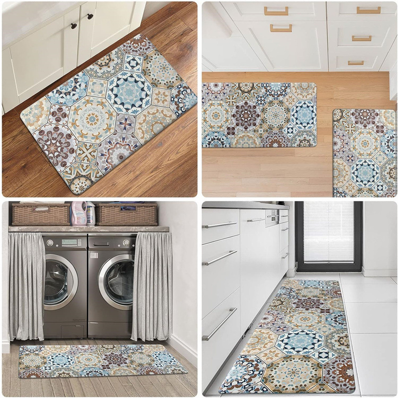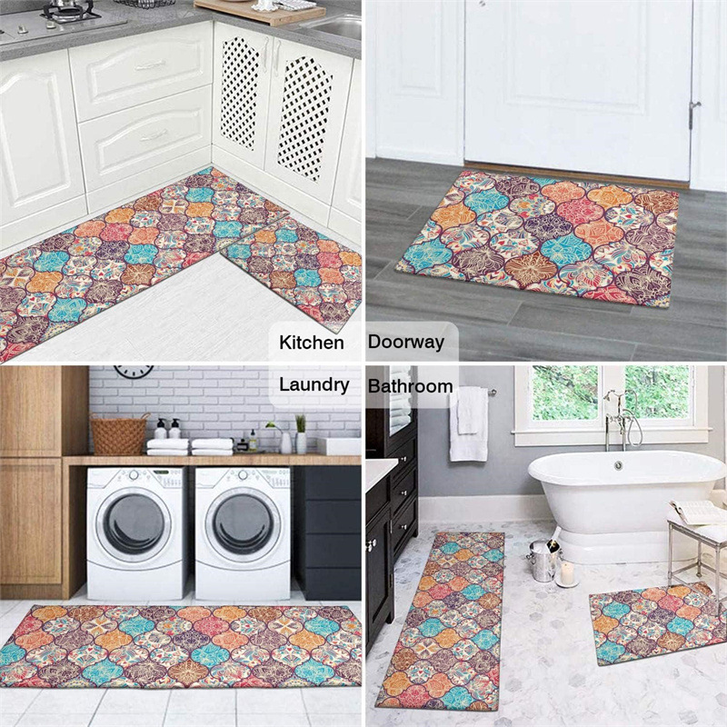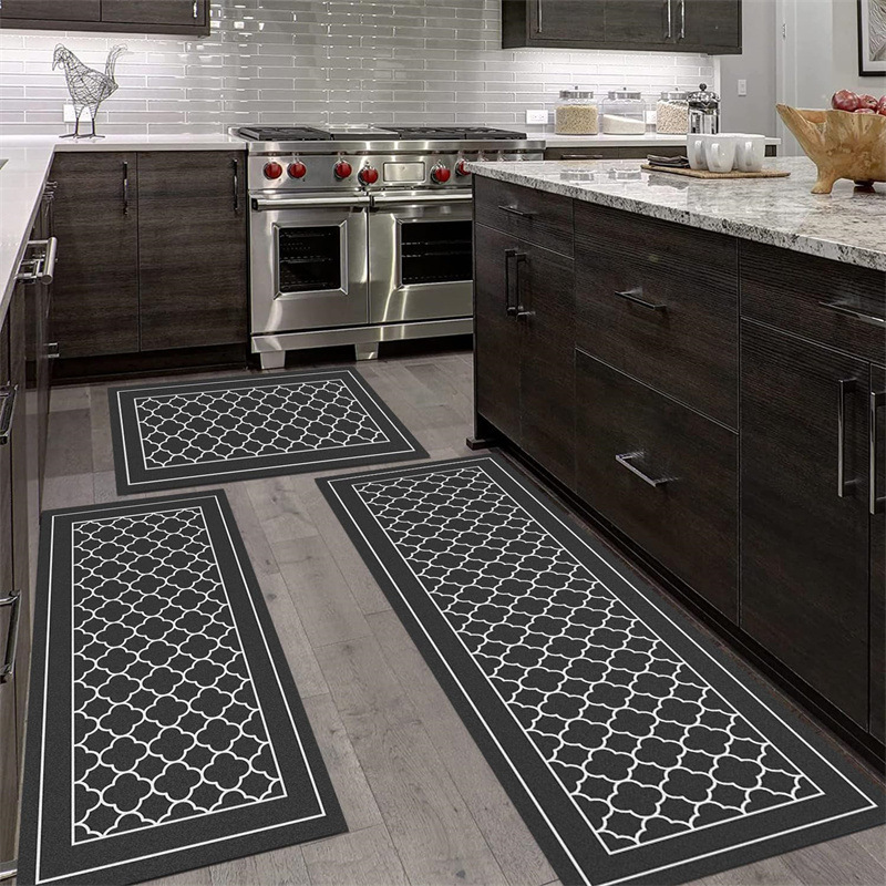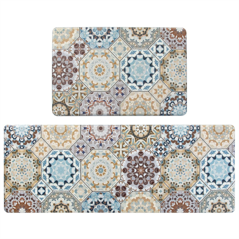 국경 간 북유럽 기하학적 꽃 주방 매트 테마 아마존 PVC 홈 매트 매트 방수 미끄럼 방지 발 매트