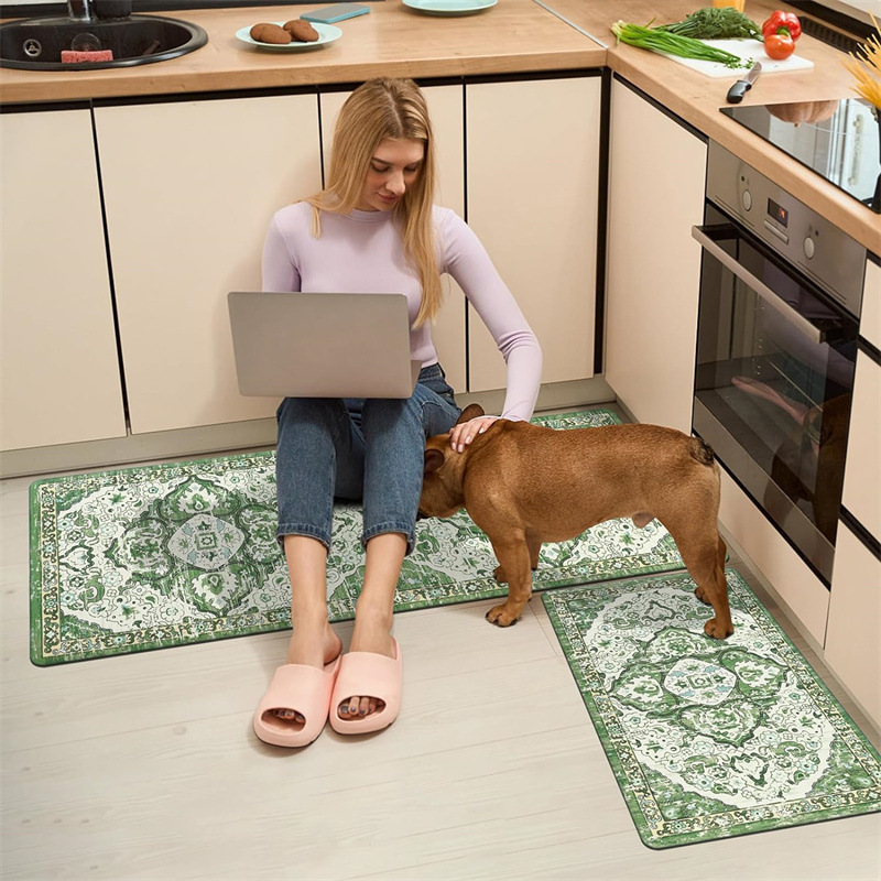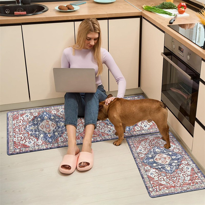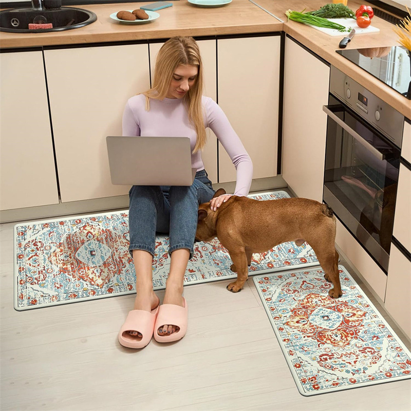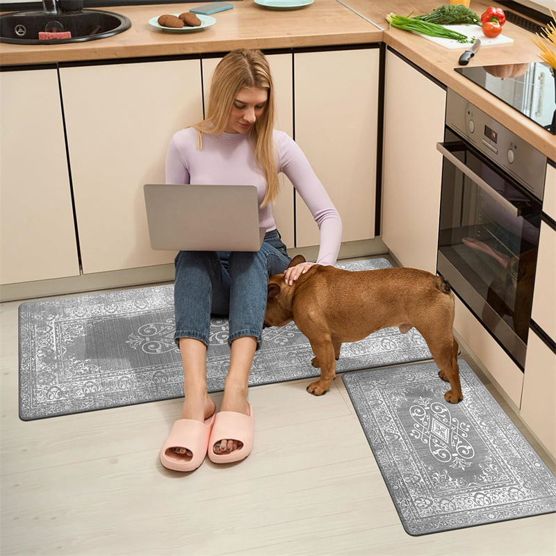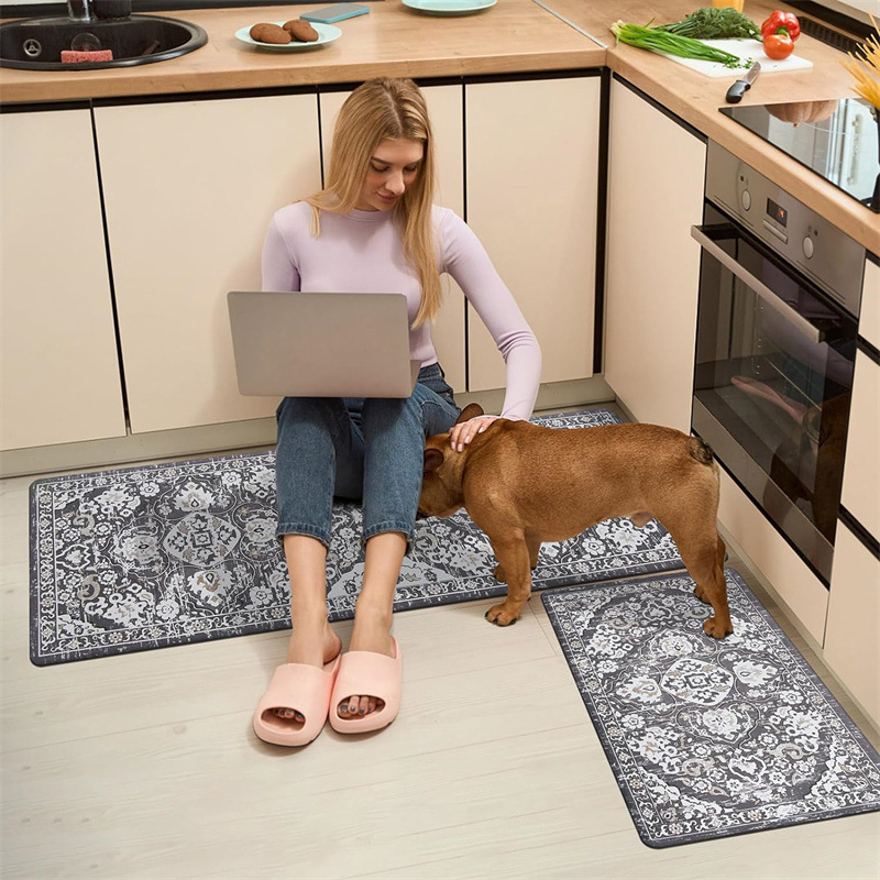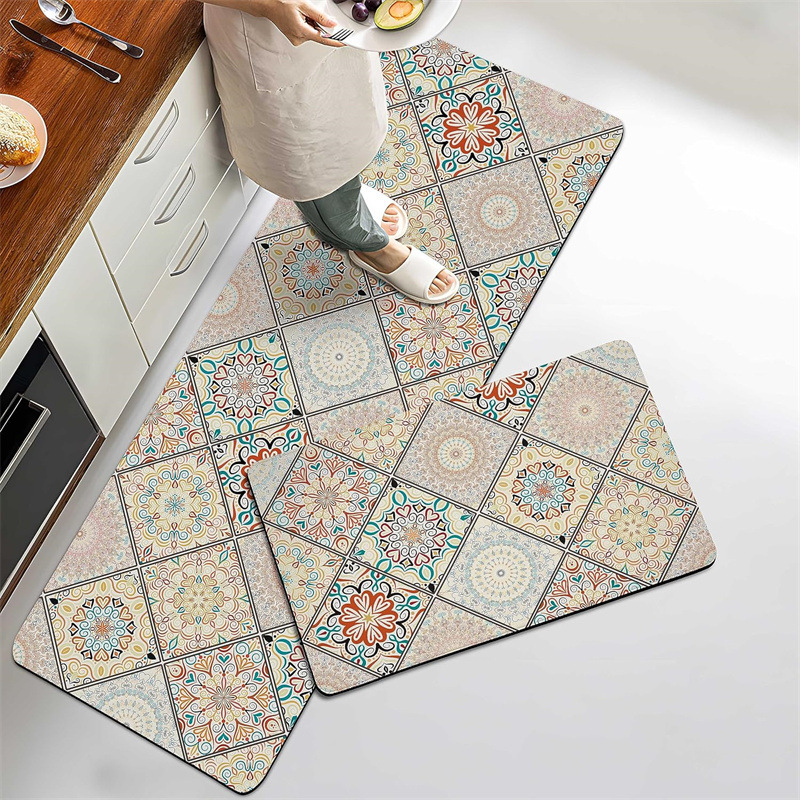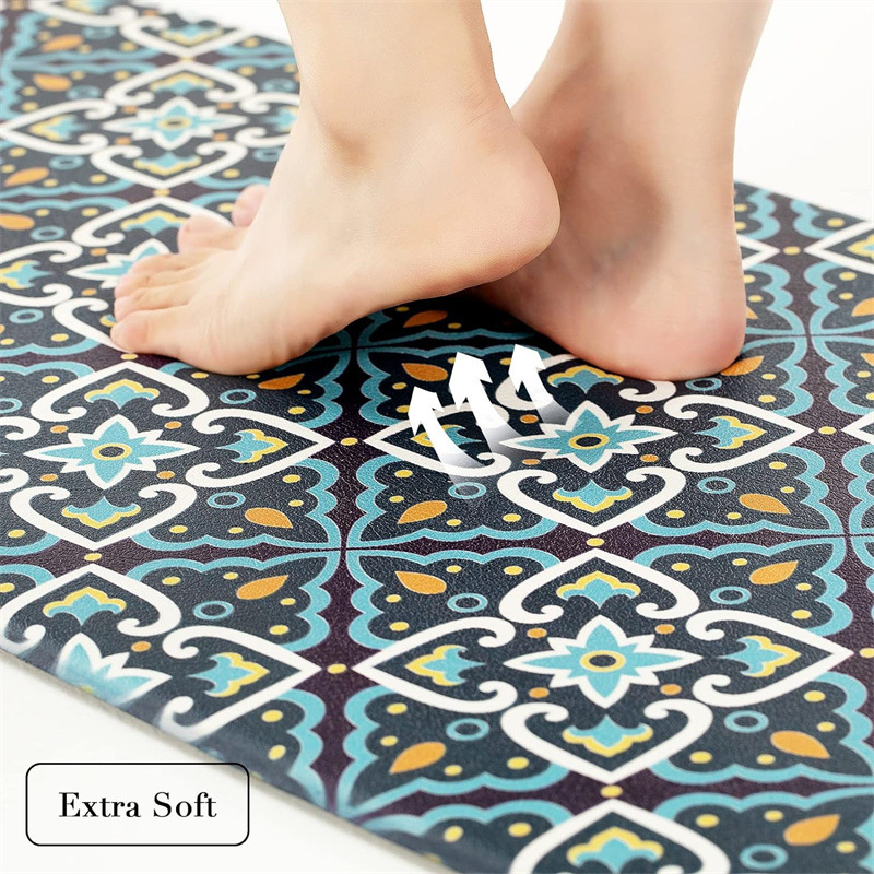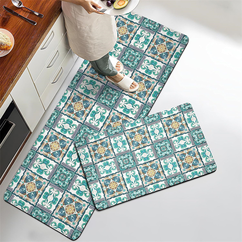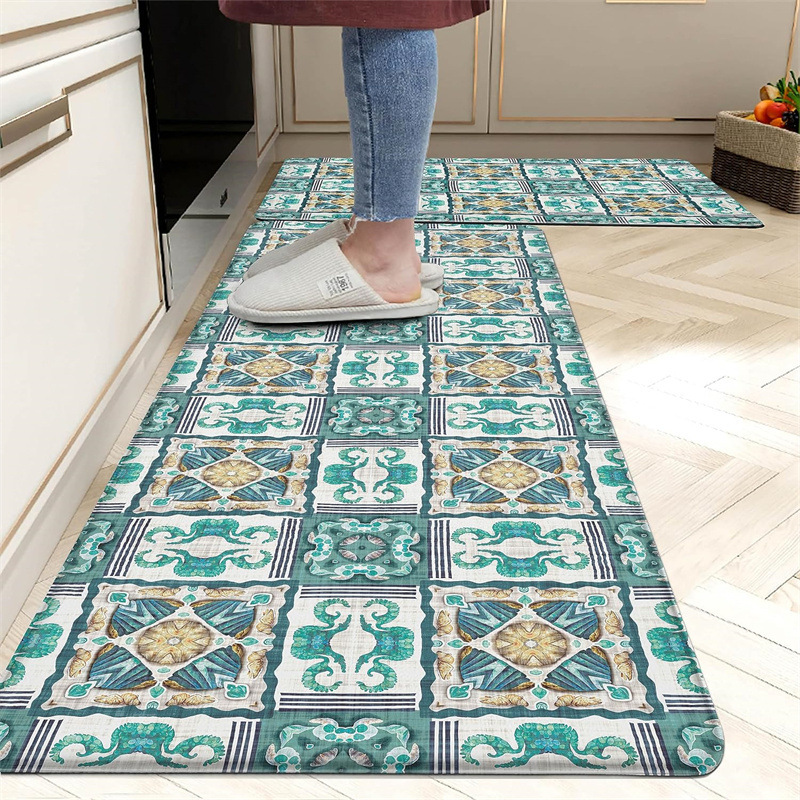 국경 간 북유럽 기하학적 꽃 주방 매트 테마 아마존 PVC 홈 매트 매트 방수 미끄럼 방지 발 매트스토어 가기