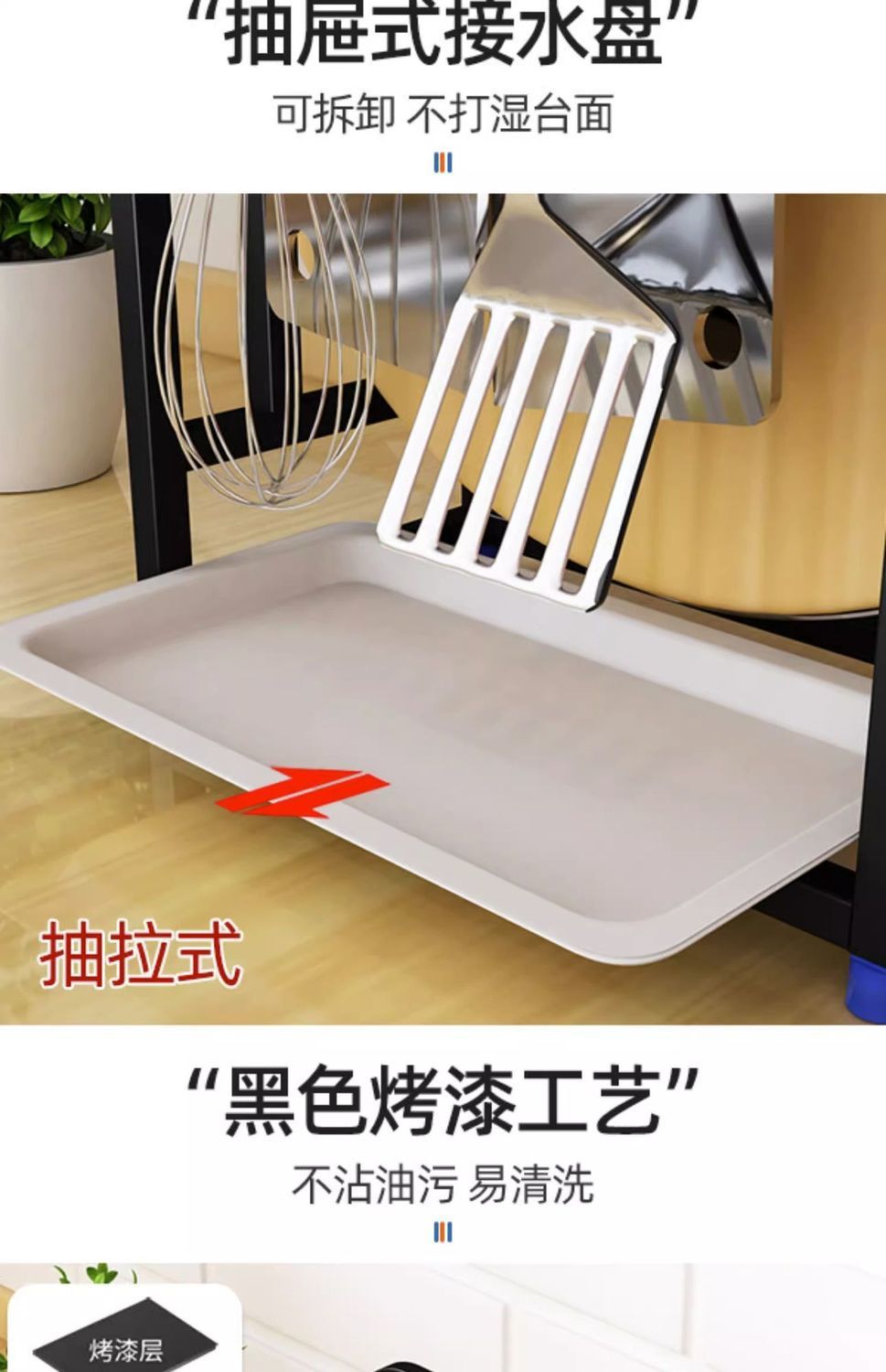 • [우아한 블랙] 더블 도마 랙 PP 플레이트 보내기 2 개의 후크