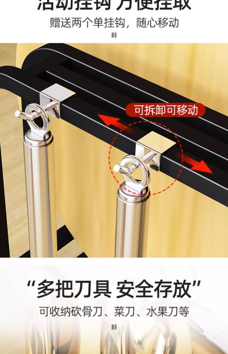 • [우아한 블랙] 간단한 칼 홀더 PP 플레이트 2 후크를 보내