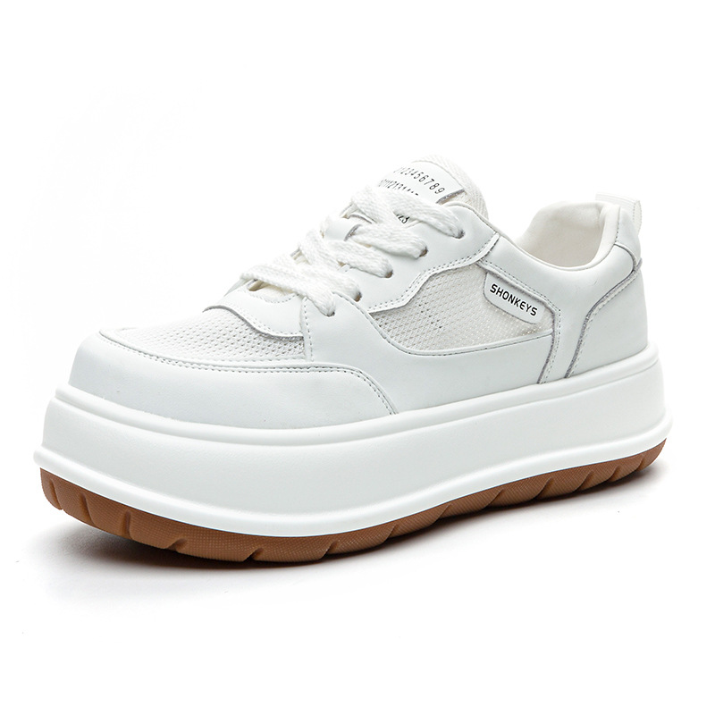 엄밀히 선정 된 가죽 두꺼운 바닥 메쉬 통기성 화이트 슈즈 여성의 2024 여름 새로운 올 매치 소프트 하단 플랫 슈즈 타이드스토어 가기