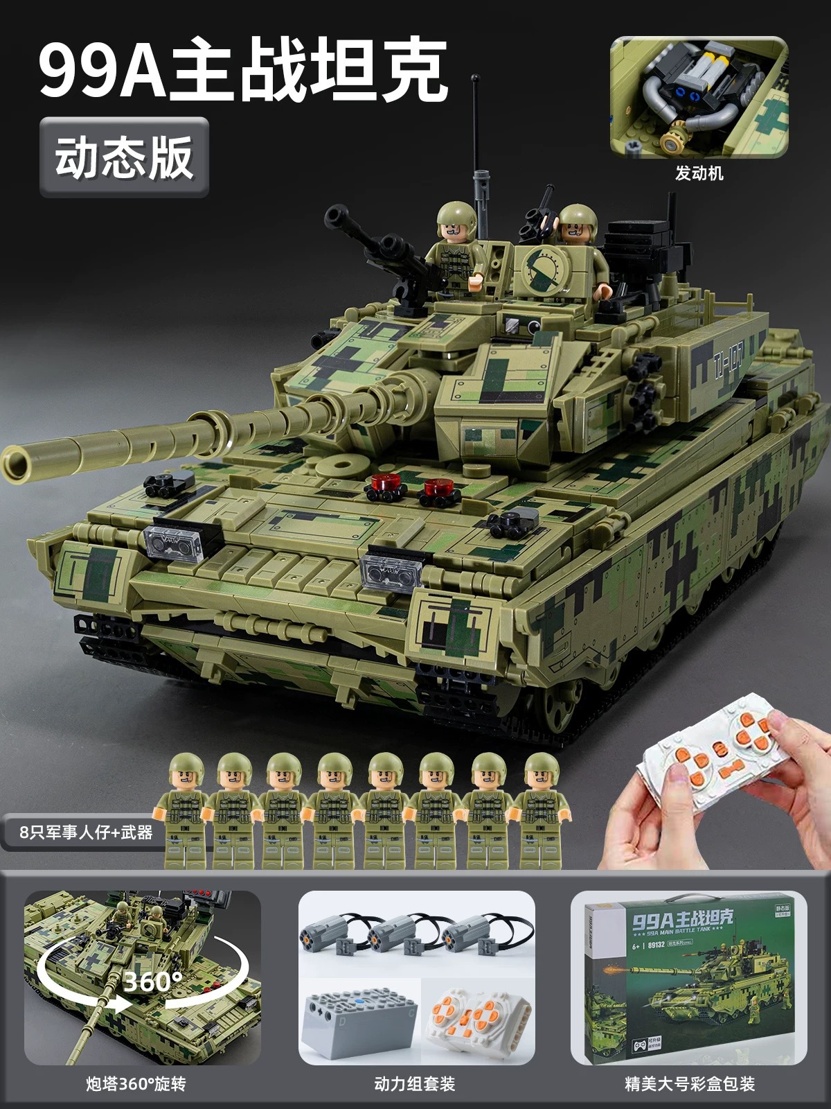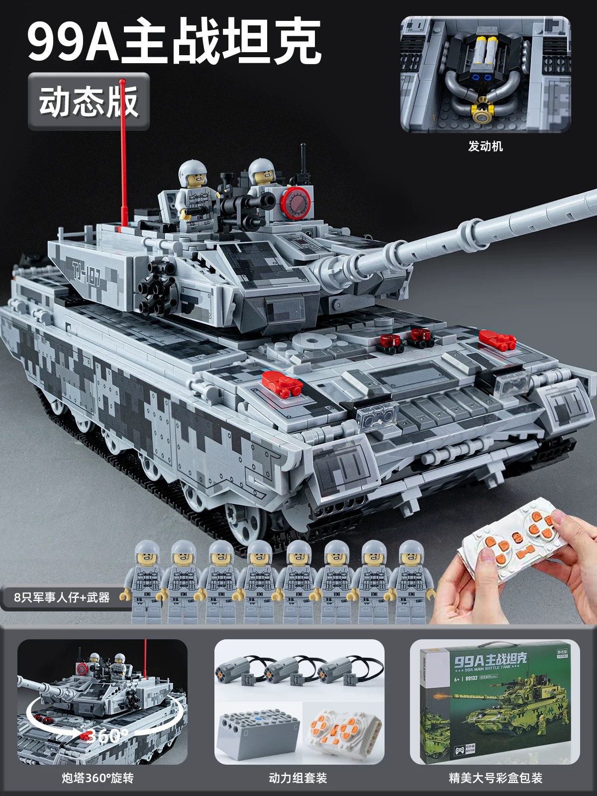 • [스노우리모컨버전] 99A 주력전차_입자 3180개_미니피겨 8개 증정_무기 많음