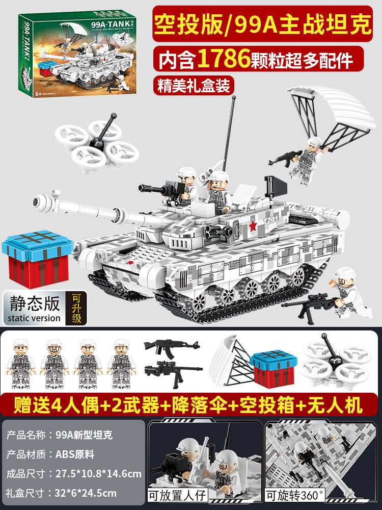 • [스노우 에어드롭 버전] 99a 주력전차 1786개 입자, 무료 미니피겨 4개, 무기 2개, 낙하산, 드론 에어드롭 박스
