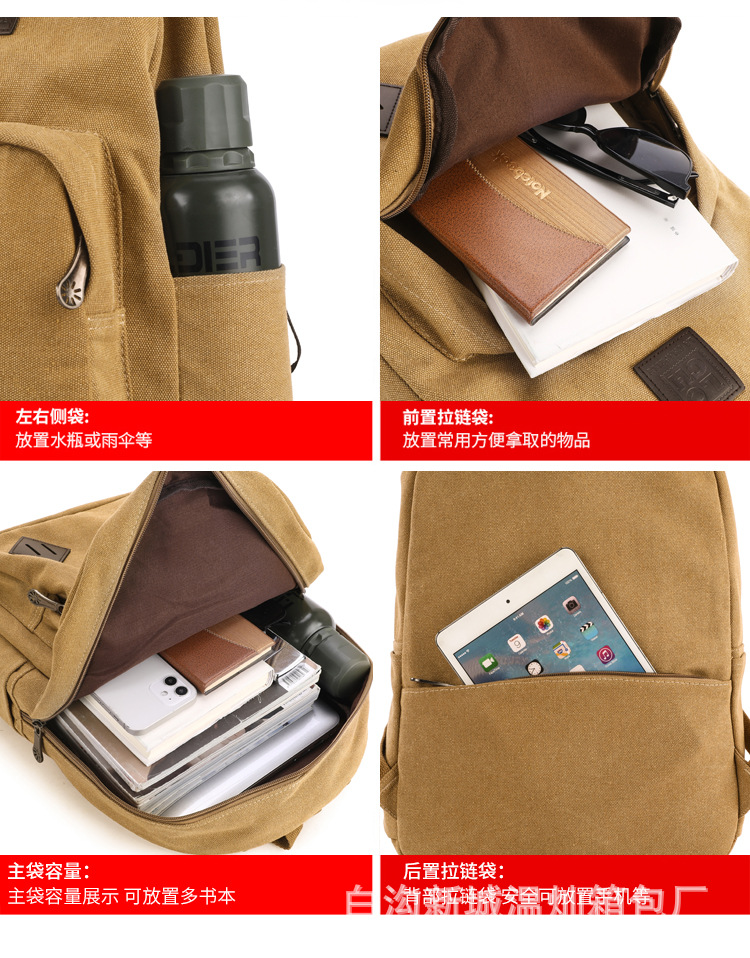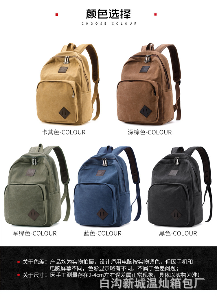 남성과 여성을위한 국경 간 배낭 가방 내마모성 캔버스 통근 초등학생 중학생 여행 컴퓨터 가방스토어 가기