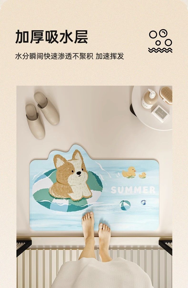 귀여운 만화 Diatom 진흙 흡수성 쿠션 빠른 건조 가정용 욕실 미끄럼 방지 발 매트 욕실 문 입구 바닥 매트