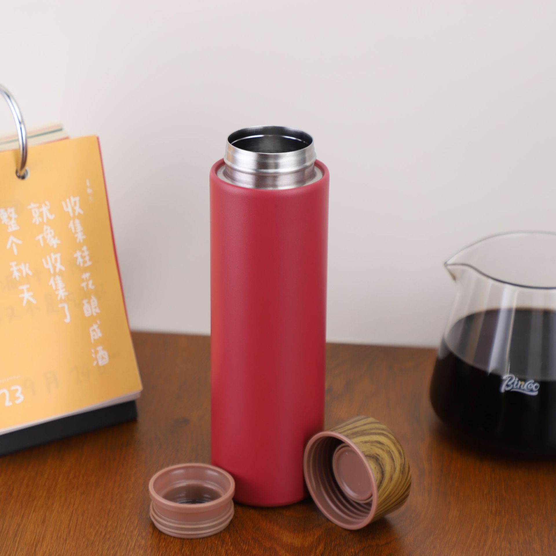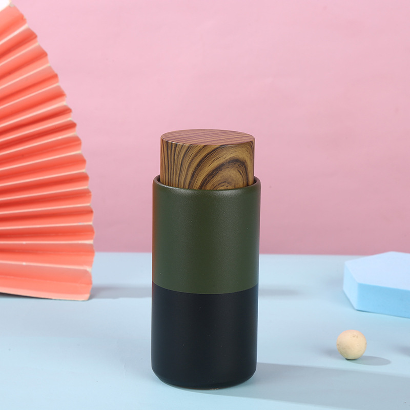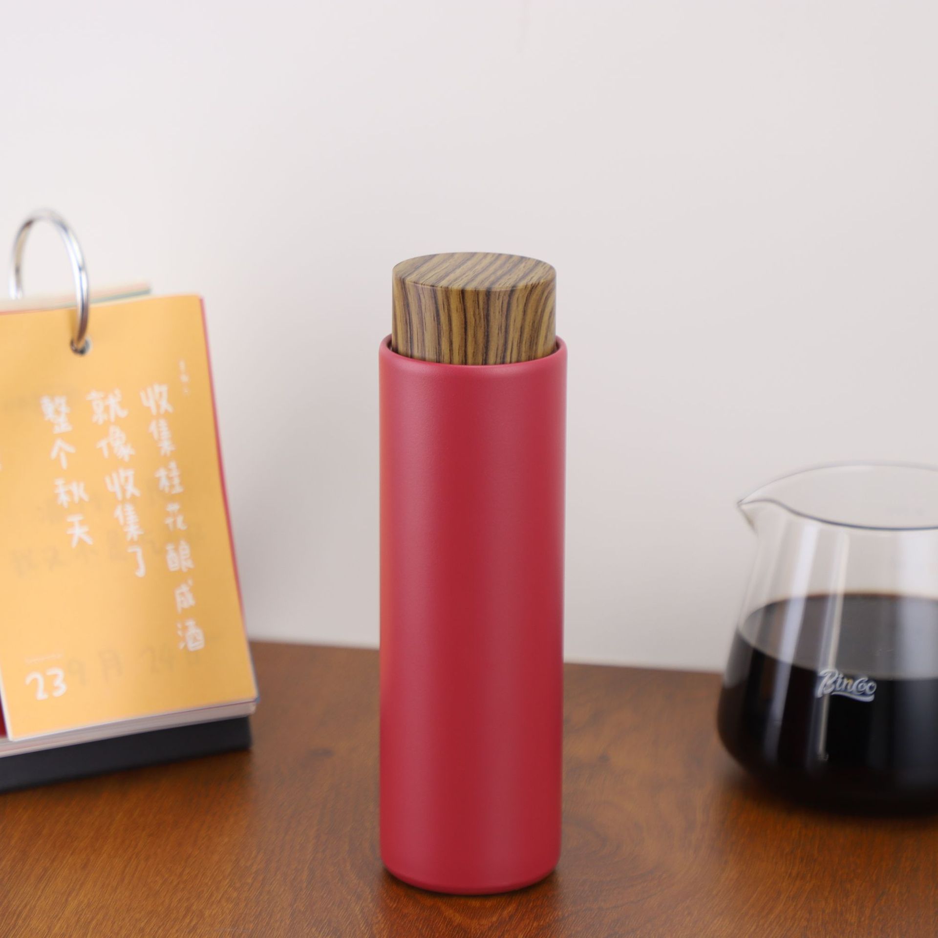 개성 Macron 컬러 우드 그레인 커버 보온병 컵 304 스테인레스 스틸 비즈니스 반주 컵 차 누출 스트레이트 컵스토어 가기