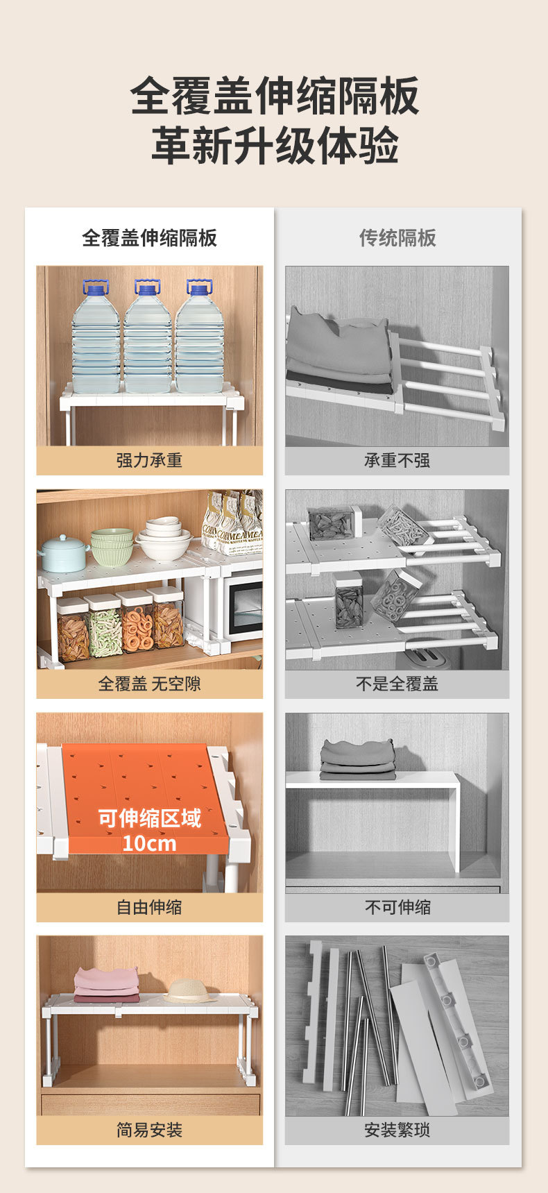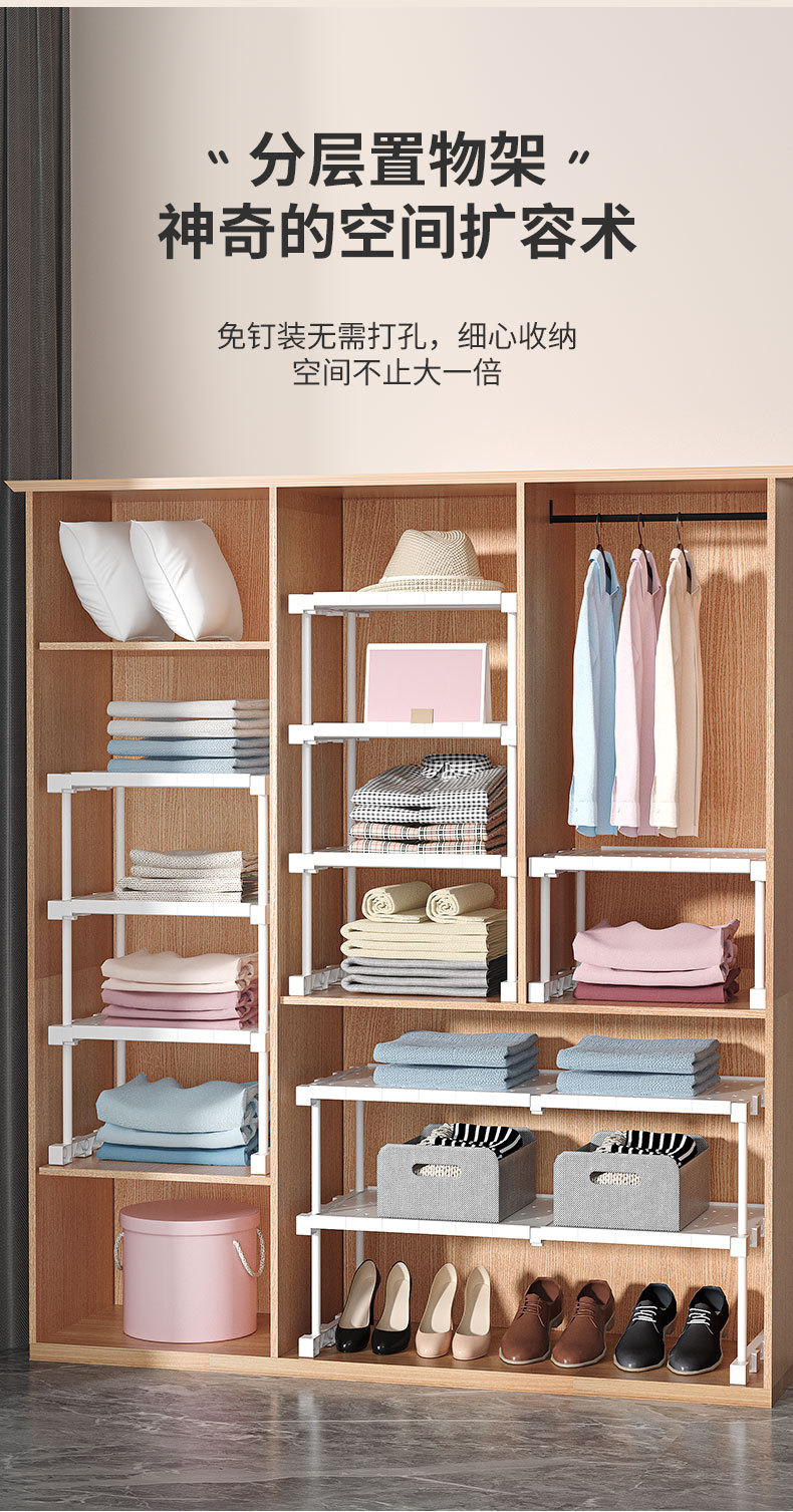 캐비닛 개폐식 저장 랙 캐비닛 공간 사용 보관 아티팩트 옷장 파티션 정렬 옷장 레이어 파티션스토어 가기