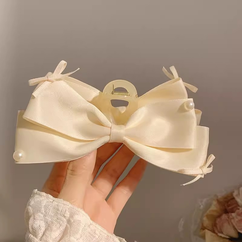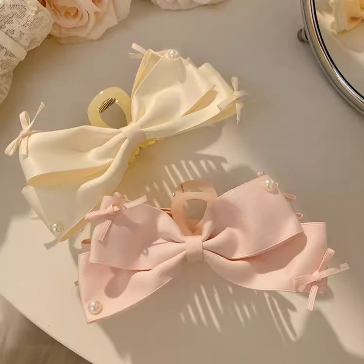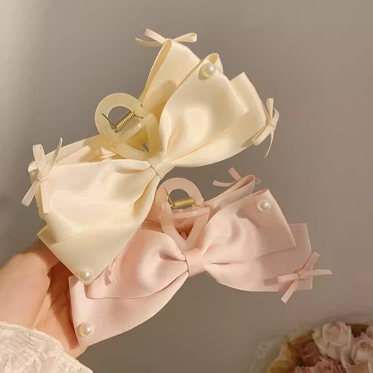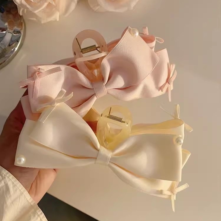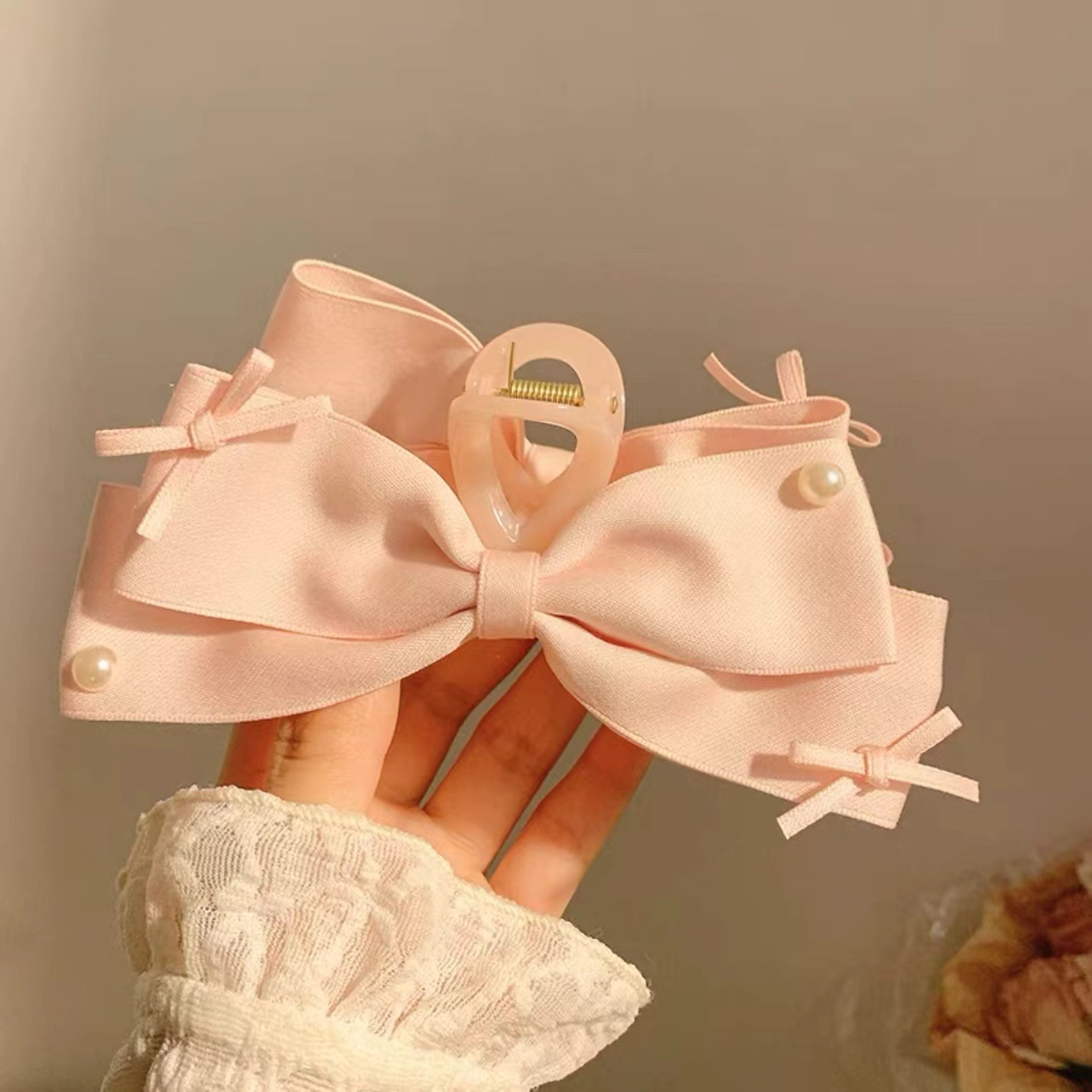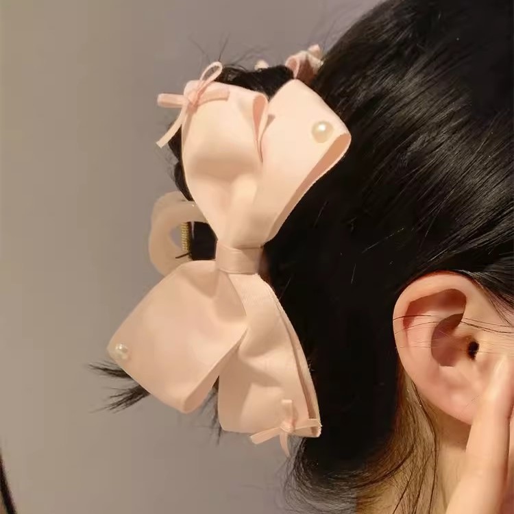핑크 활 진주 머리핀 여성의 여름 2024 새로운 머리 클립 고급 헤어 액세서리 헤드웨어 상어 클립스토어 가기