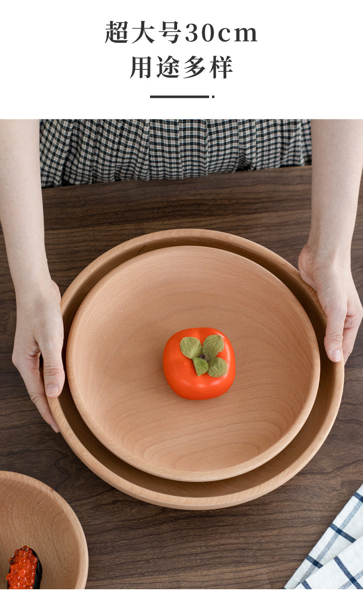 솔리드 우드 보울 너도밤 나무 통 나무 샐러드 그릇 라운드 그릇 가정용 과일 그릇 일본 스타일 나무 그릇 빈티지 식기 솔리드 컬러스토어 가기