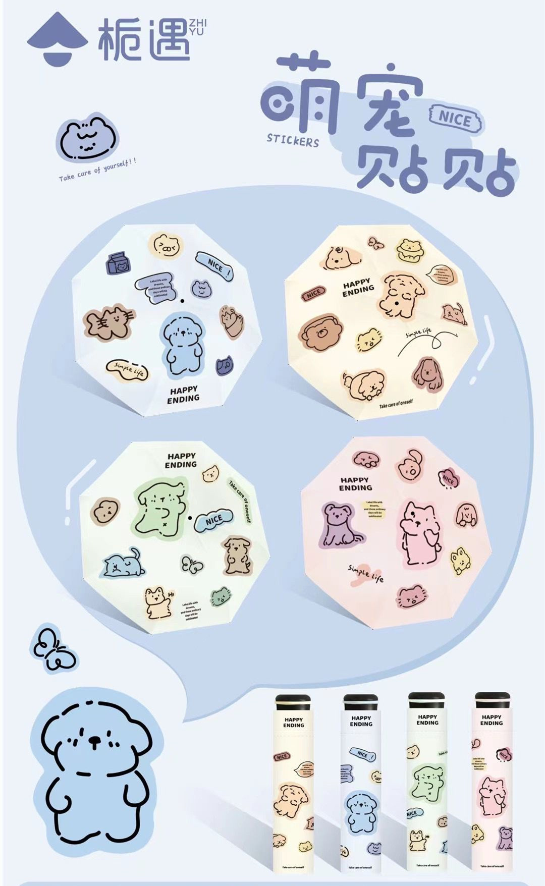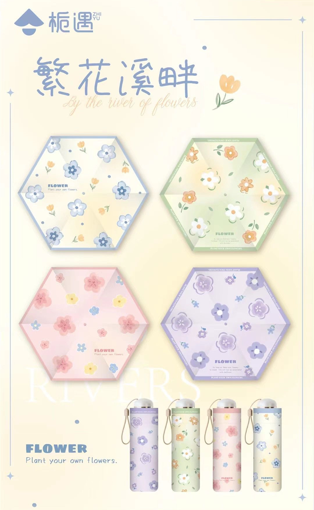 Zhiyu 디지털 인쇄 시리즈 맑고 비오는 우산 증가 강화 방풍 휴대용 접는 남녀 학생용 양산 우산