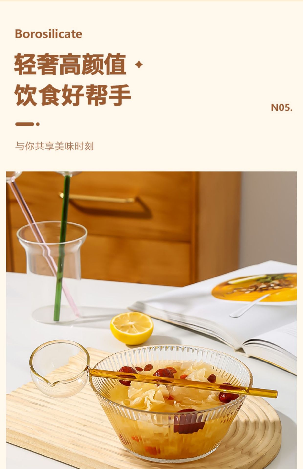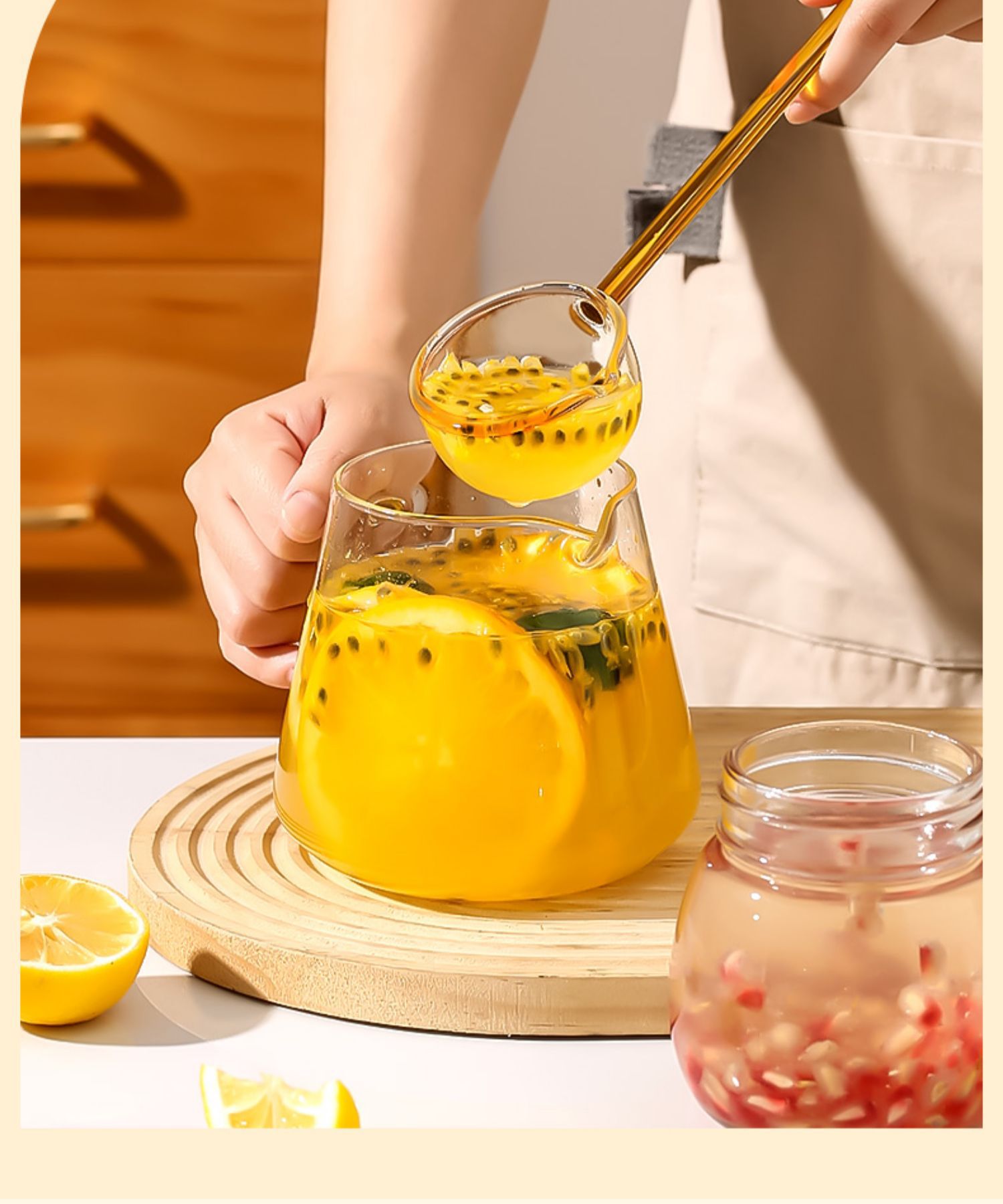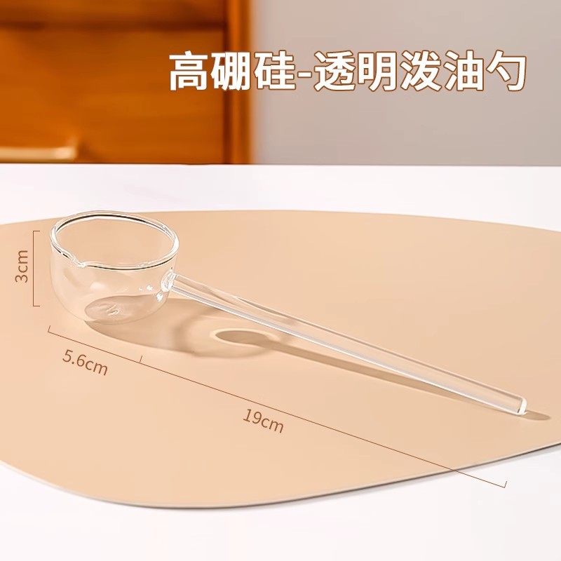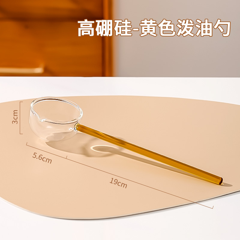 높은 붕규산 유리 스푼, 고온 방지, 긴 손잡이, 다채로운 손잡이, 뜨거운 기름 붓는 스푼, 주방 특수 조미료 스푼