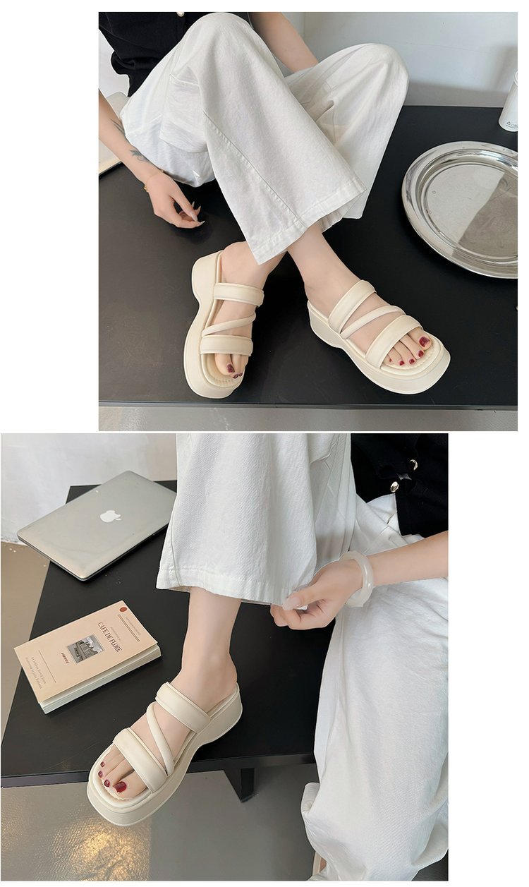 두꺼운 슬리퍼 여성 2024 년 여름 새로운 한국 스타일 머핀 오픈 발가락 유행 샌들