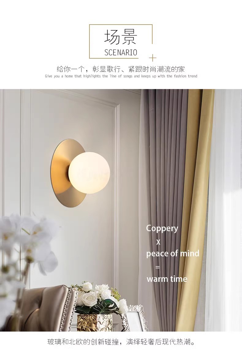 아마존 노르딕 라이트 럭셔리 벽 램프 디자이너 소프트 피팅 간단한 통로 배경 벽 침실 침실 유리 볼 램프
