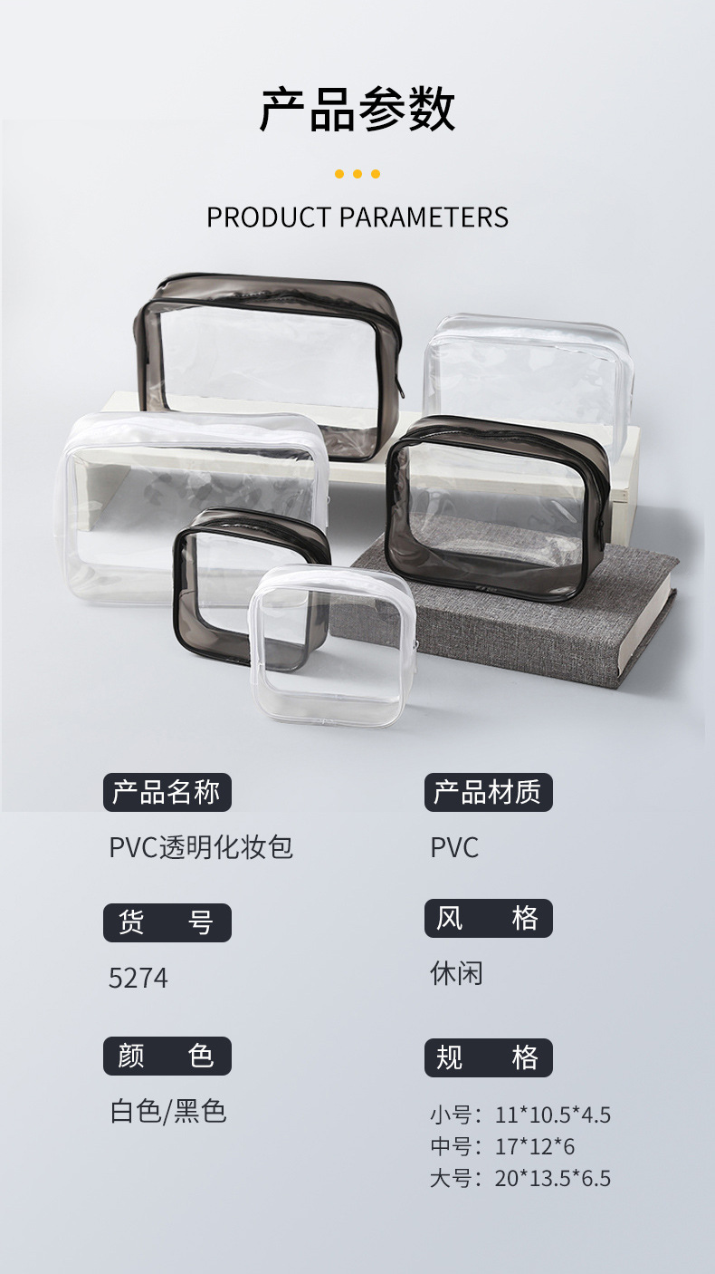 PVC 투명 화장품 가방 간단한 휴대용 워시 백 멀티 사이즈 3 피스 투명 방수 여행 보관 가방