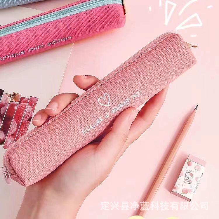 초등 학교 학생을위한 휴대용 소형 소용량 연필 케이스 중학생 간단한 문구 연필 케이스 작은 캔버스 연필 케이스스토어 가기