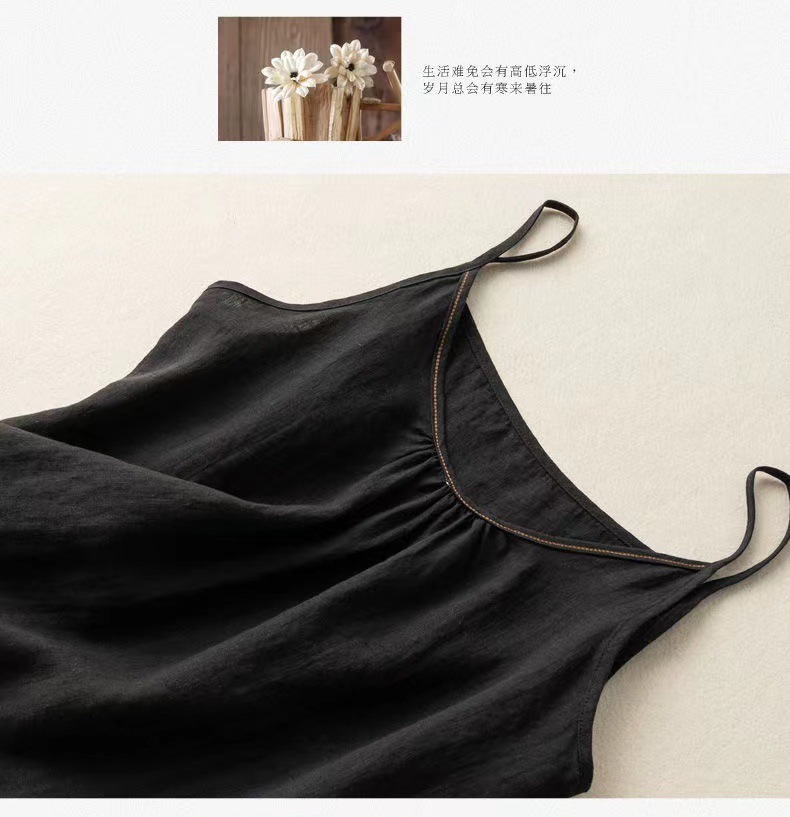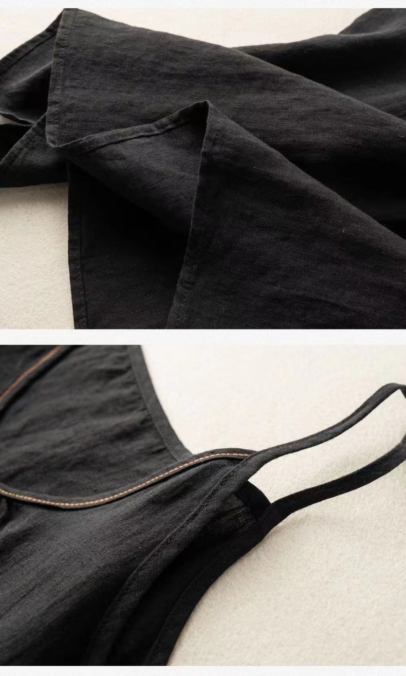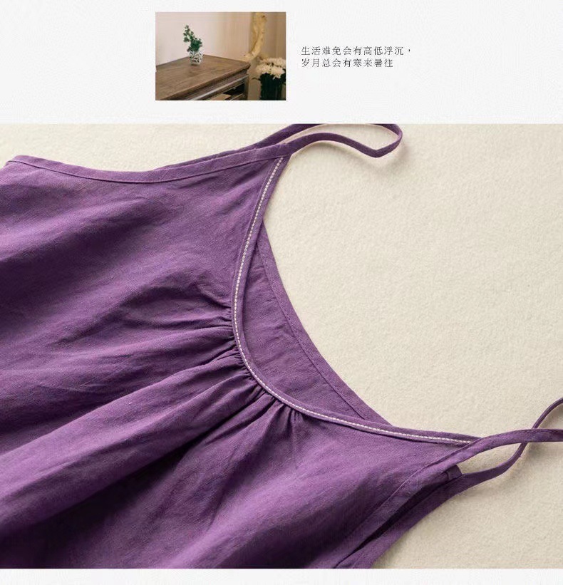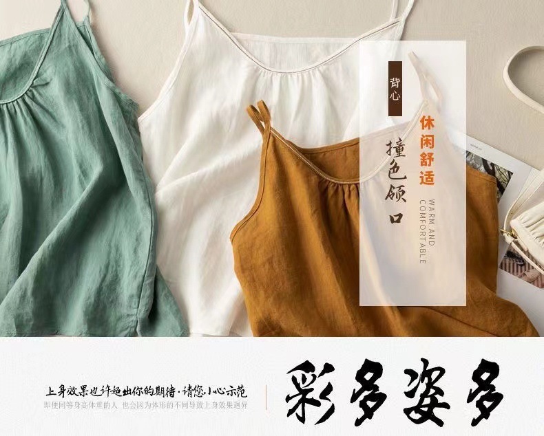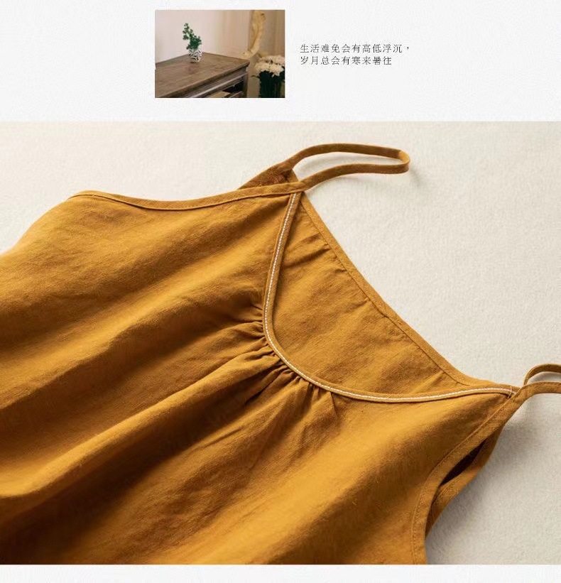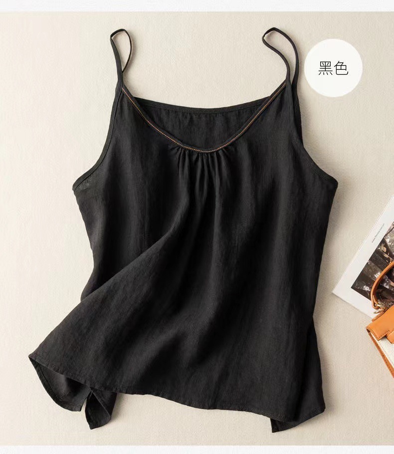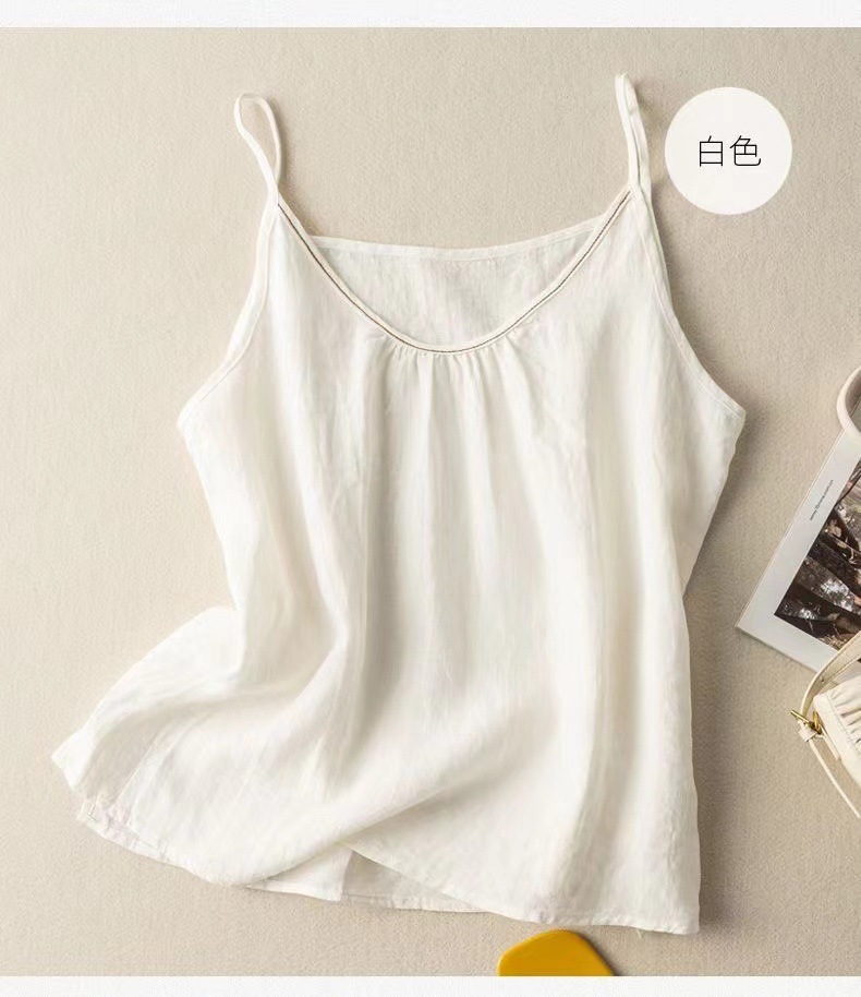 새로운 여름 코튼 카미 솔 여성용 코튼 및 리넨 솔리드 컬러 베이스 외부 착용 예술적 레트로 얇은 루즈 탑