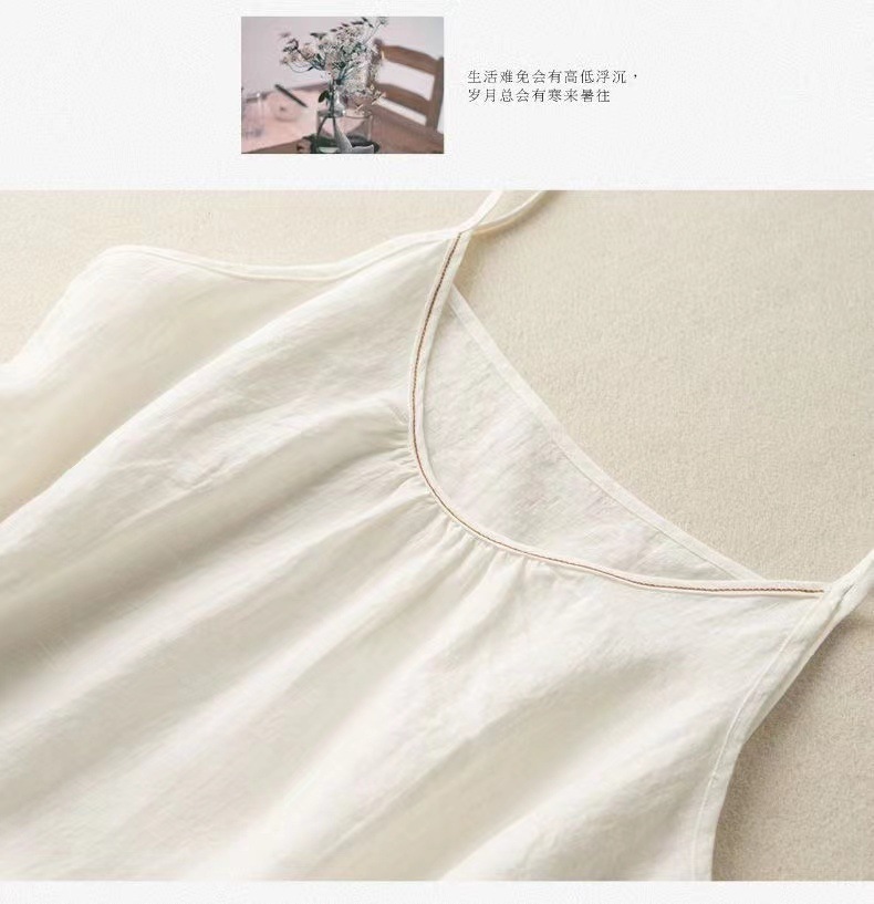 새로운 여름 코튼 카미 솔 여성용 코튼 및 리넨 솔리드 컬러 베이스 외부 착용 예술적 레트로 얇은 루즈 탑스토어 가기