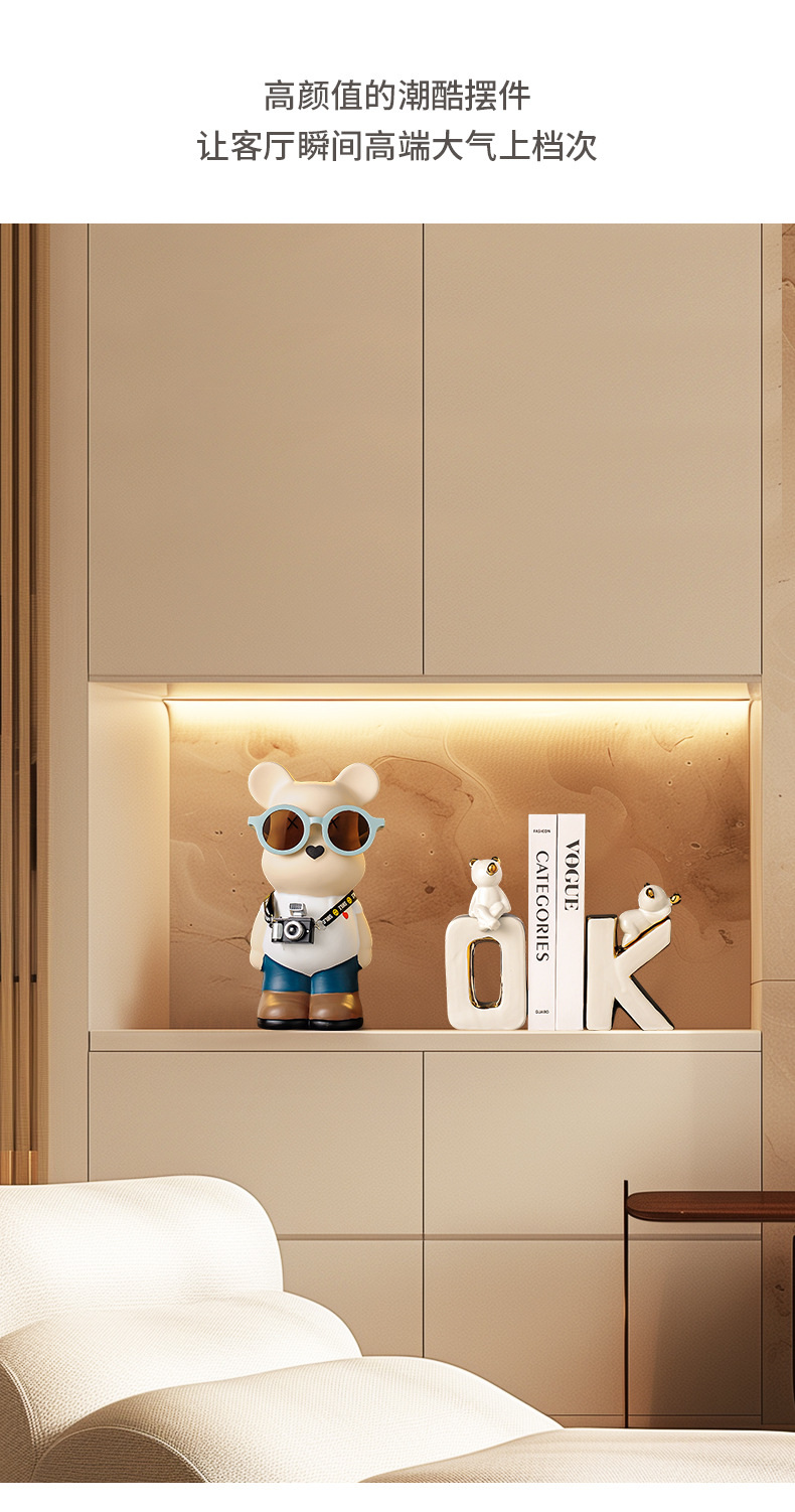 폭력적인 곰 장식품 가벼운 고급 고급 고급 거실 와인 캐비닛 TV 캐비닛 디스플레이 캐비닛 라이브 룸 장식 하이 엔드 센스 틈새