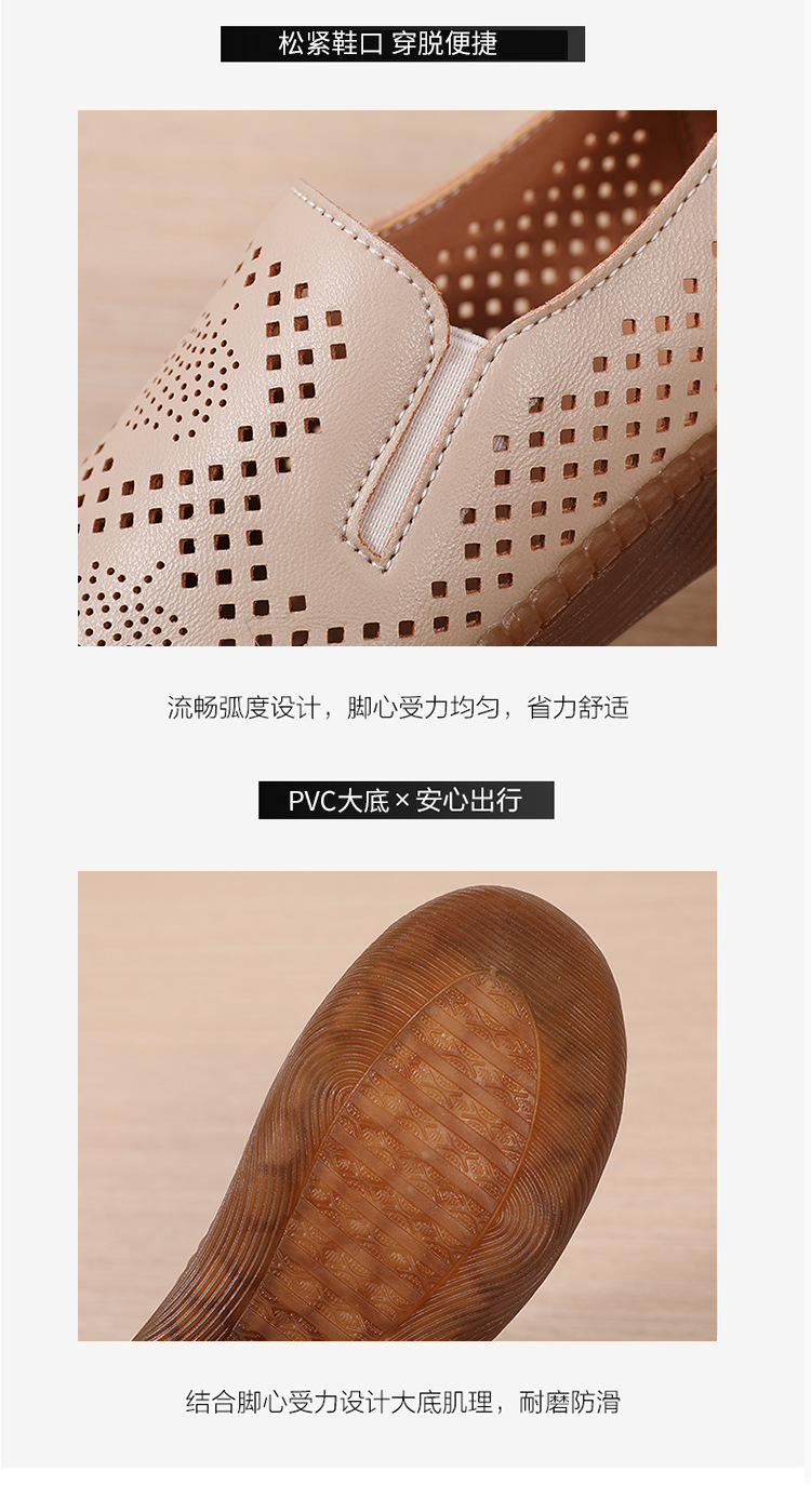 2024 여름 새로운 스타일의 어머니 신발 플랫 비 슬립 할로우 게으른 신발 얕은 신발 통기성 캐주얼 홀 신발스토어 가기