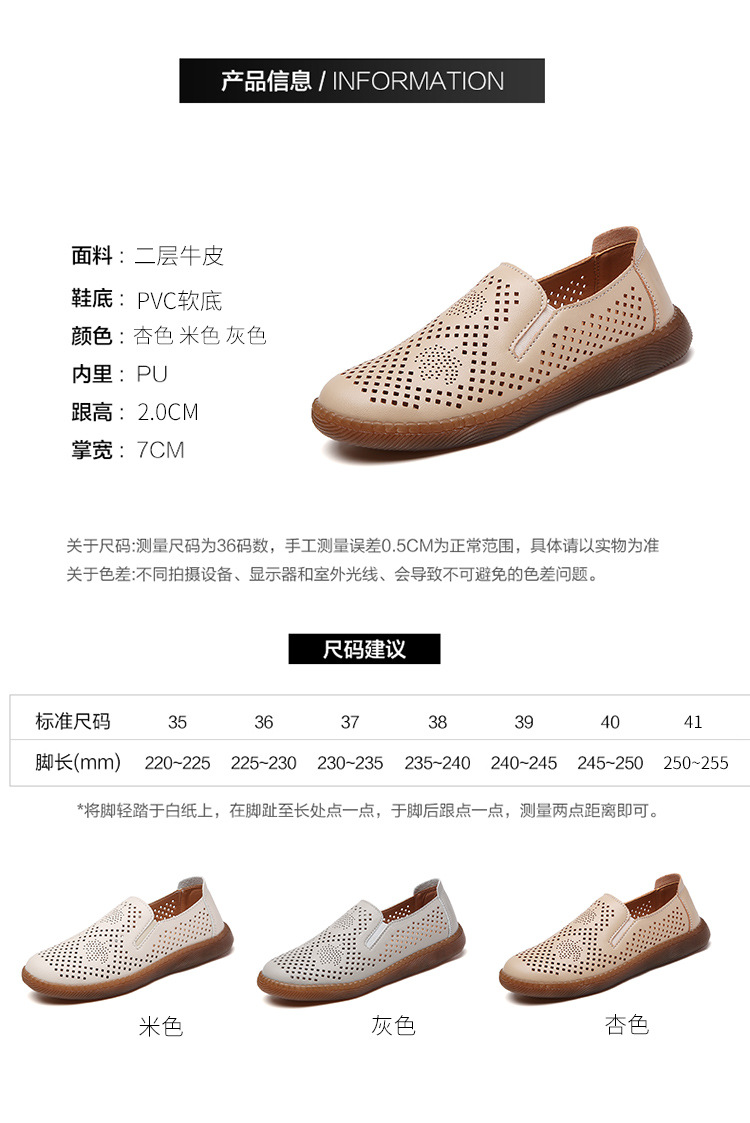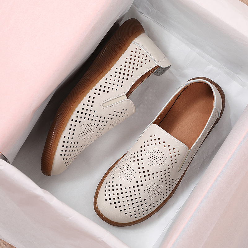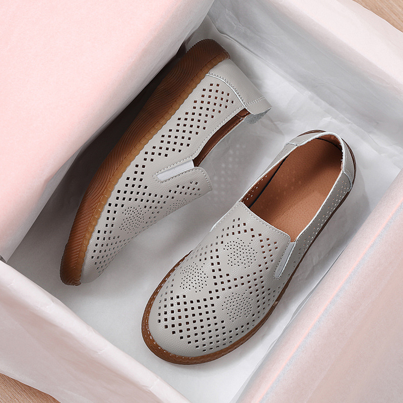 2024 여름 새로운 스타일의 어머니 신발 플랫 비 슬립 할로우 게으른 신발 얕은 신발 통기성 캐주얼 홀 신발