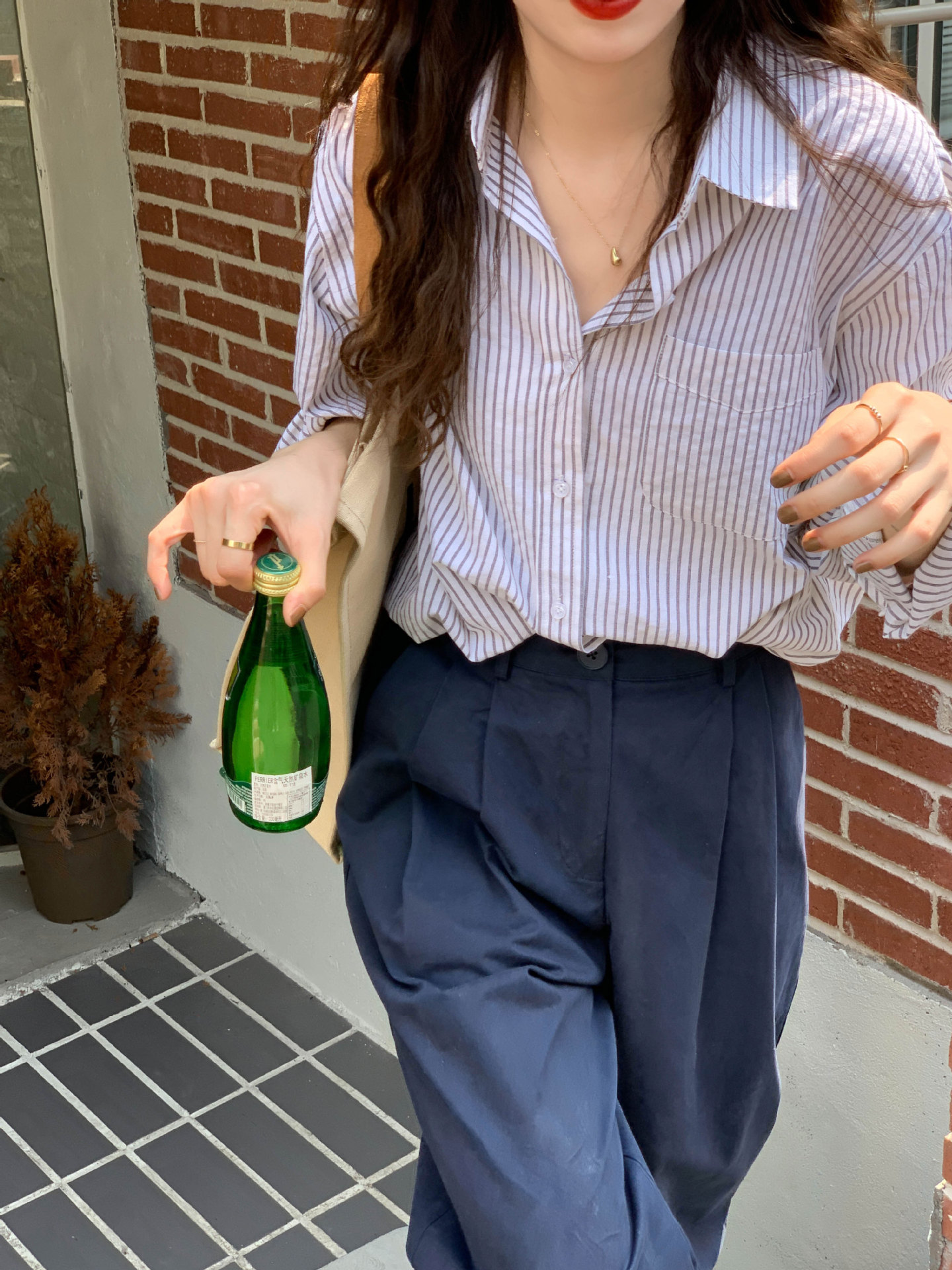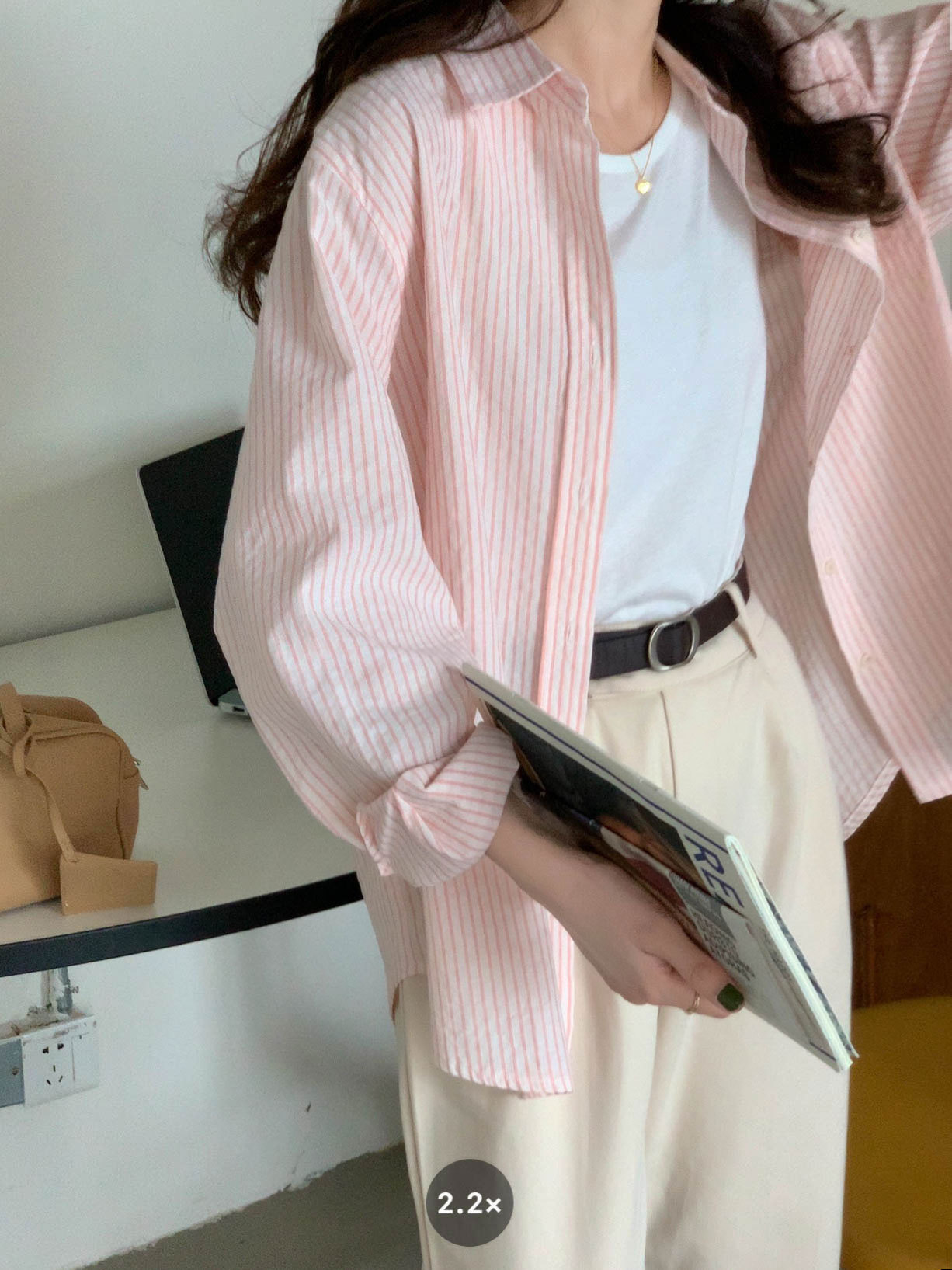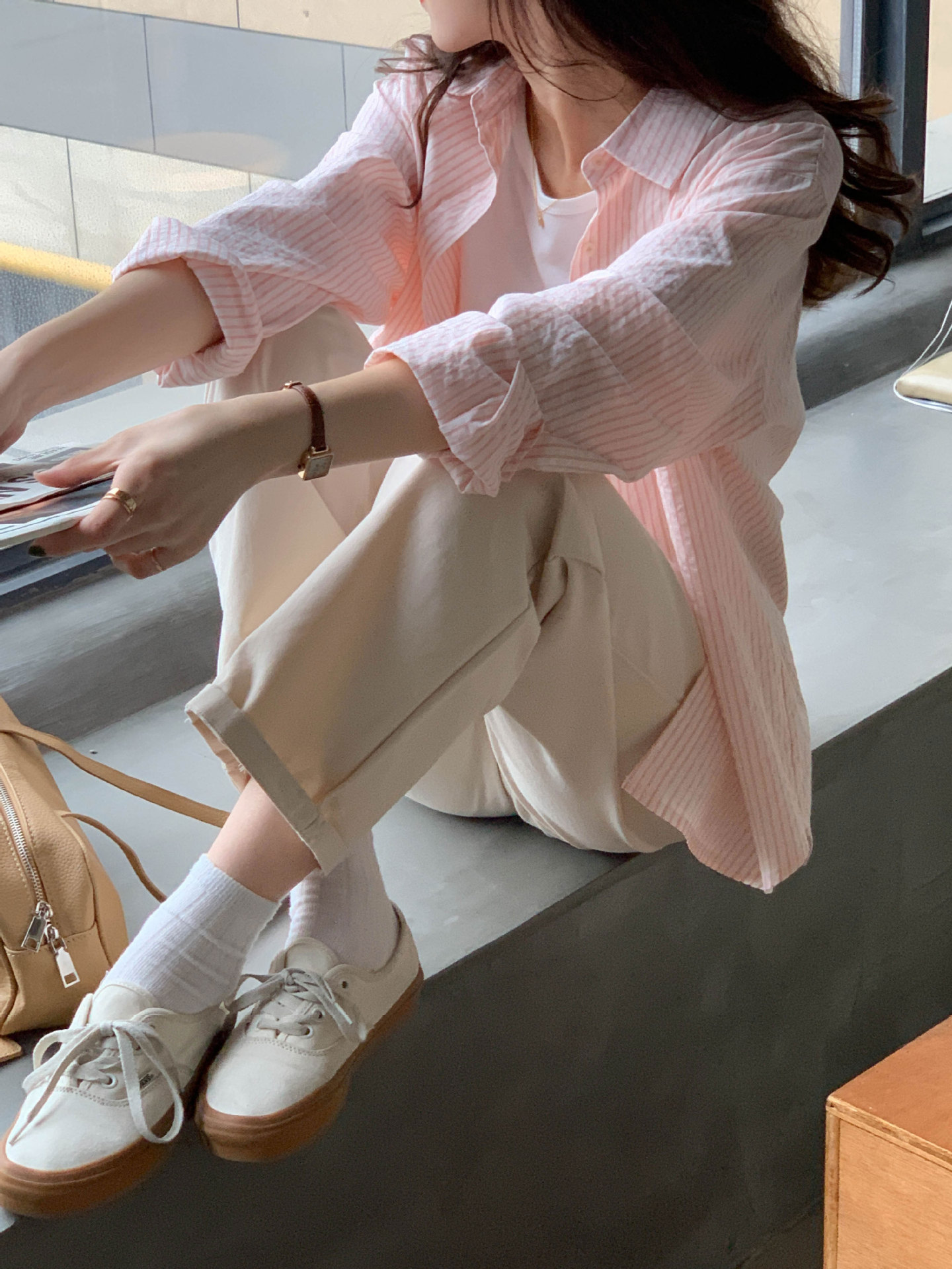 줄무늬 셔츠 여성의 2024 여름 새로운 스타일 탑 게으른 느슨한 홍콩 스타일 긴팔 셔츠 캐주얼 태양 보호 옷스토어 가기