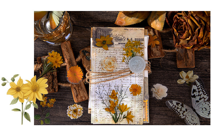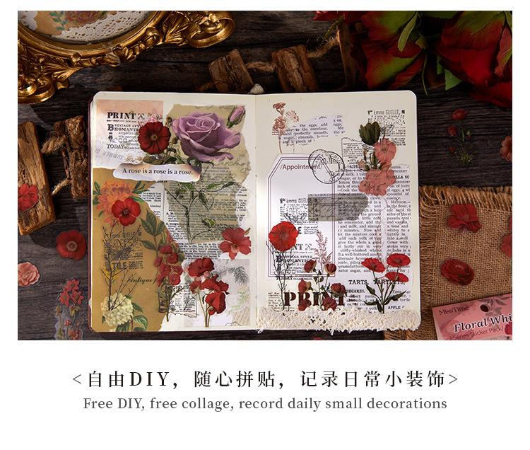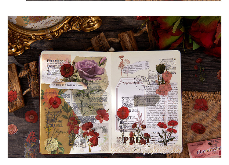 빛 따기 핸드북 스티커 꽃 언어 저음 복고풍 식물 꽃 콜라주 소재 크리 에이 티브 스티커 스티커 국경스토어 가기