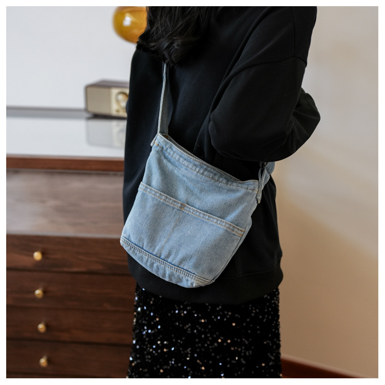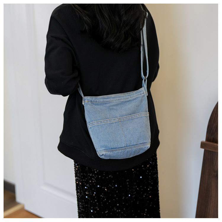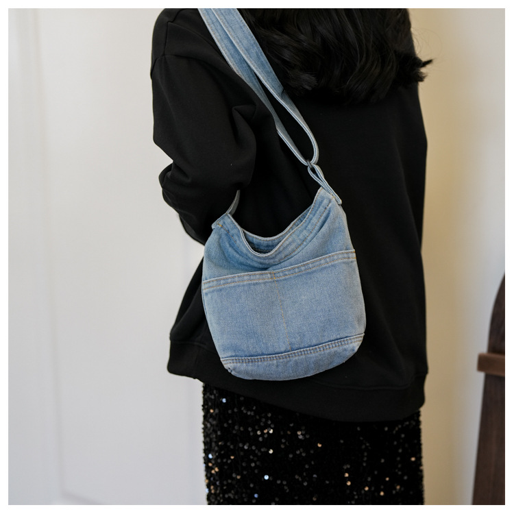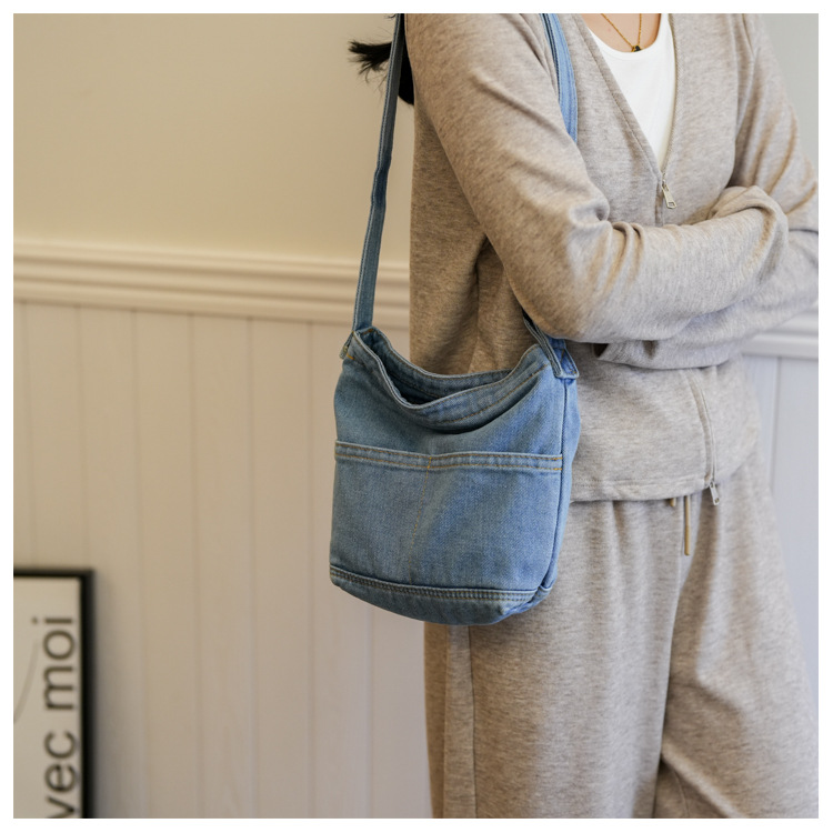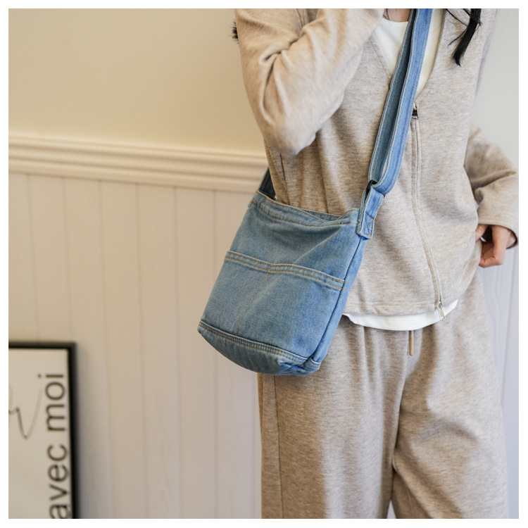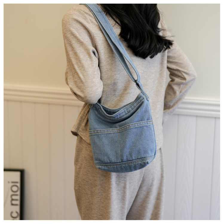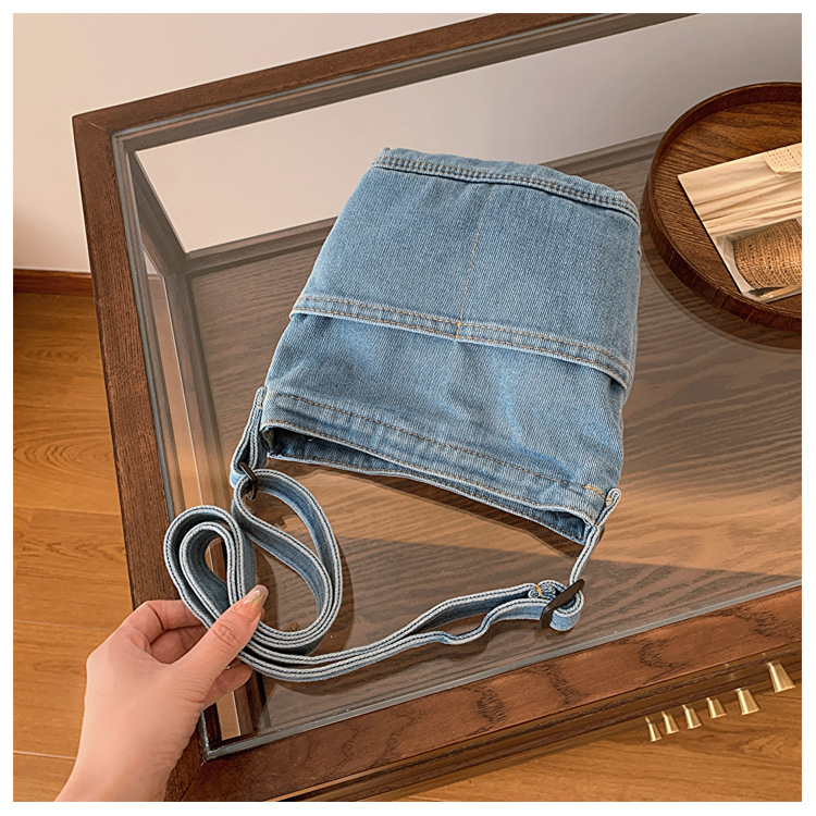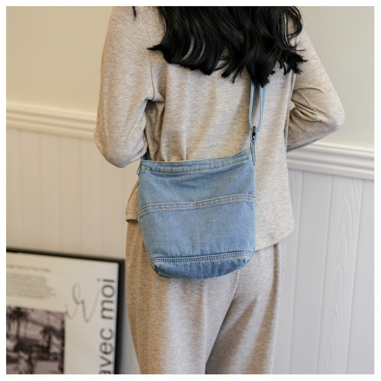 새로운 한국 스타일 Ins 세탁 데님 버킷 가방 여성 학생 어깨 가방 트렌디 한 올 매치 휴대 전화 크로스 바디 백스토어 가기