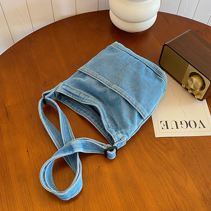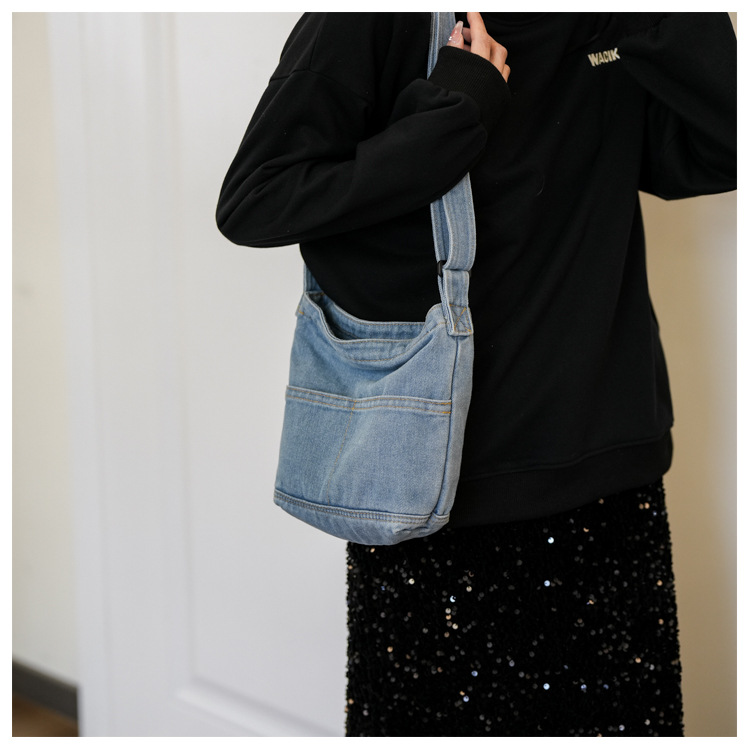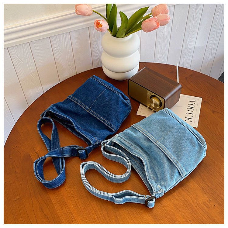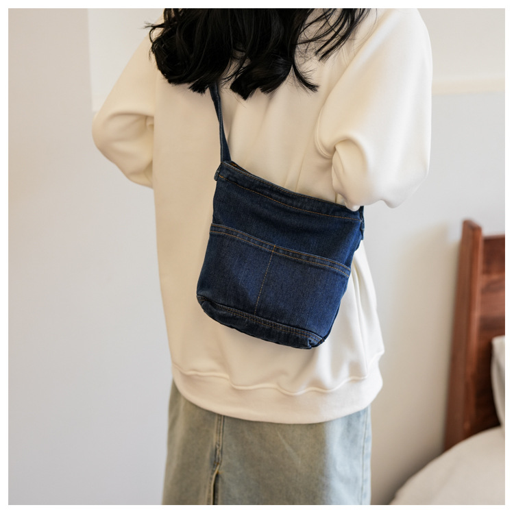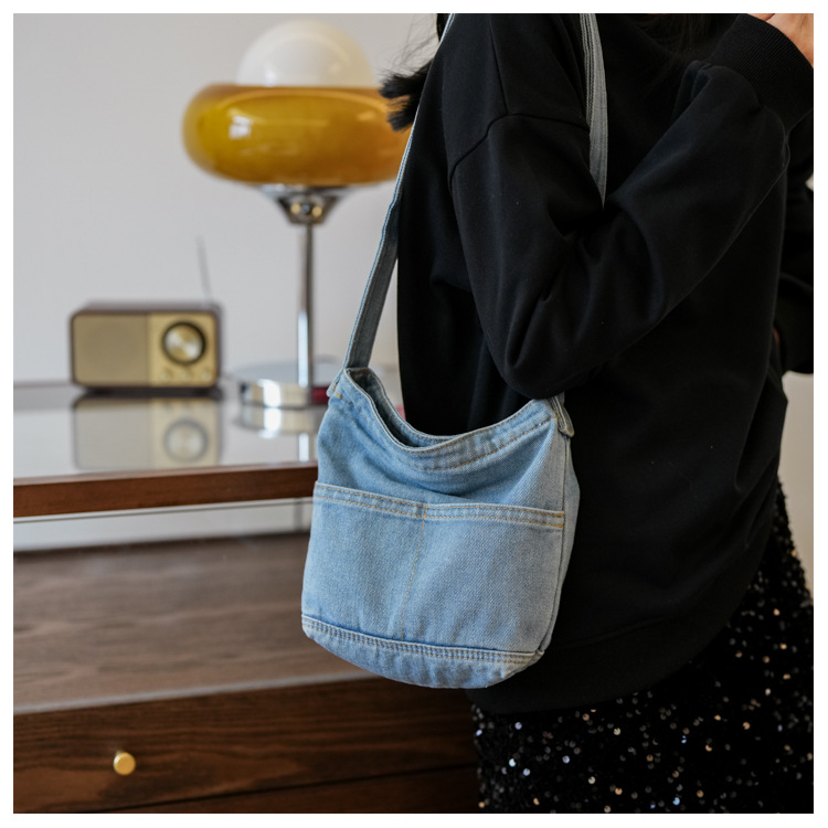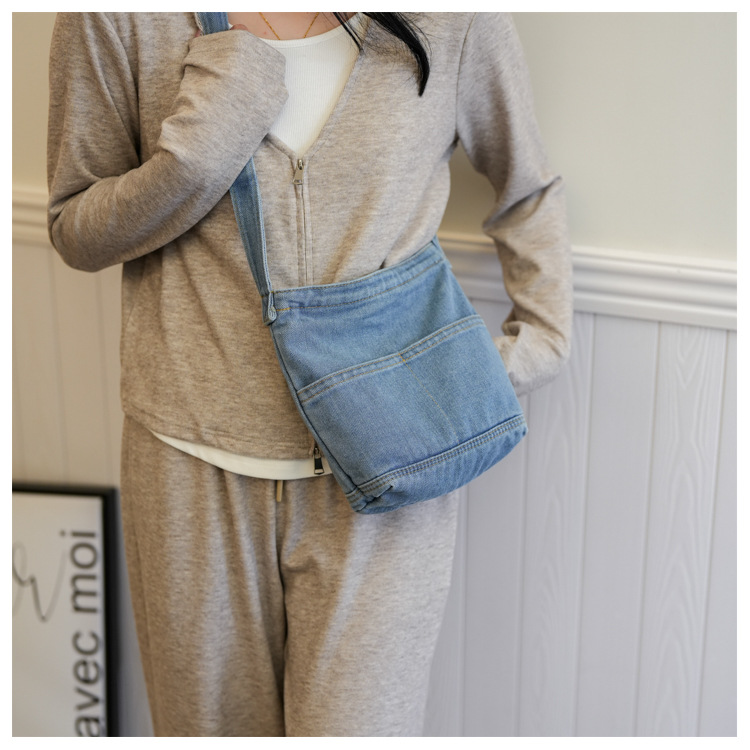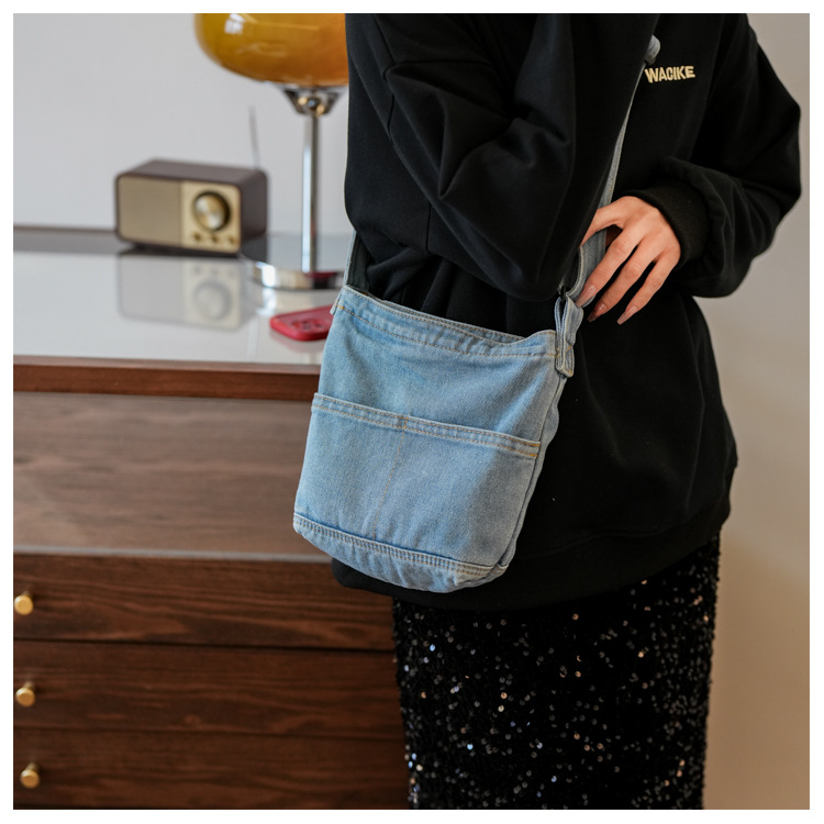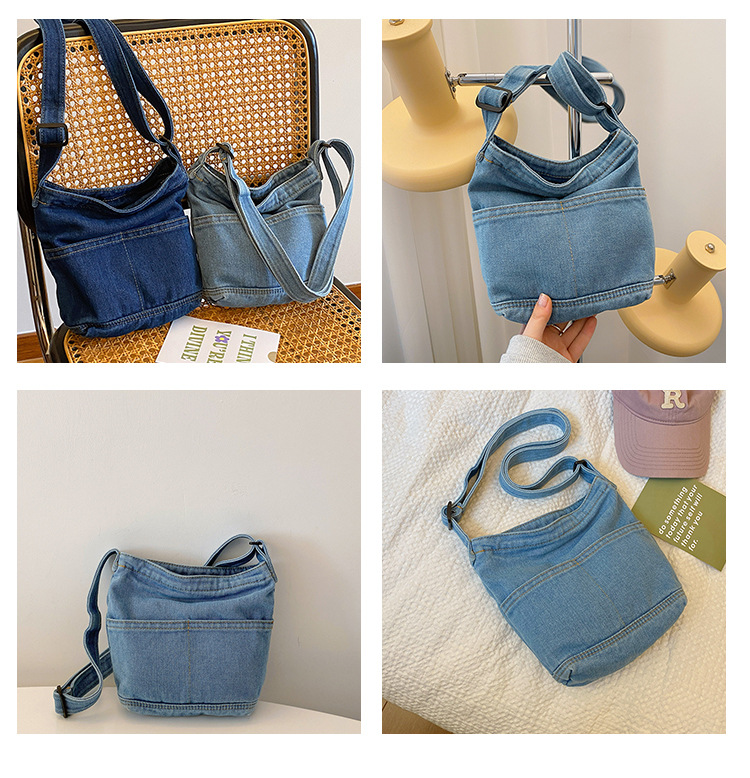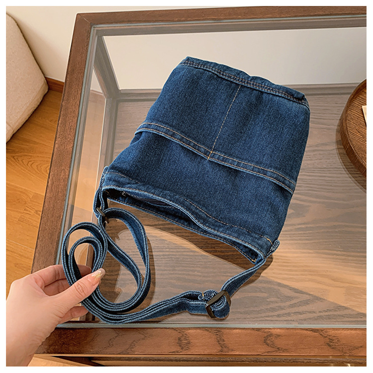 새로운 한국 스타일 Ins 세탁 데님 버킷 가방 여성 학생 어깨 가방 트렌디 한 올 매치 휴대 전화 크로스 바디 백스토어 가기