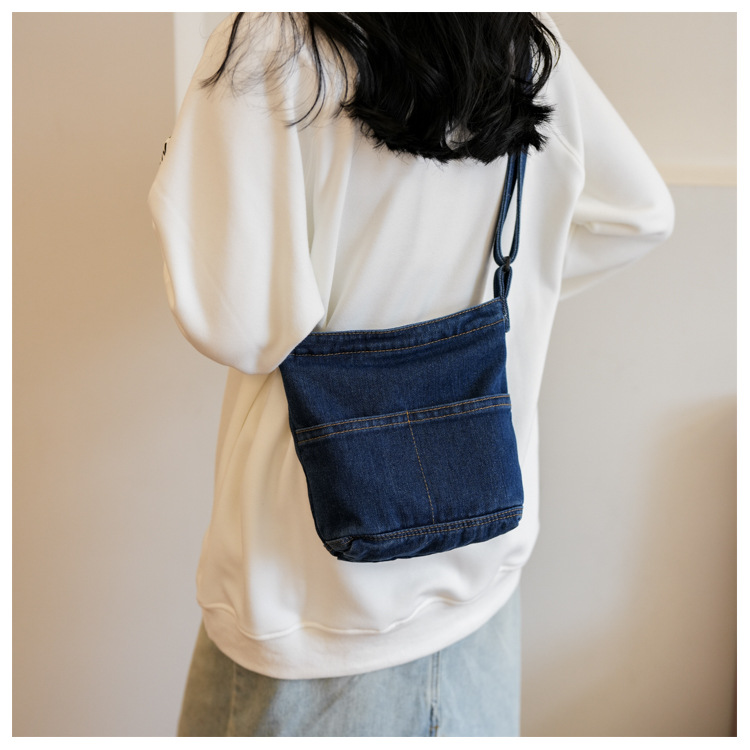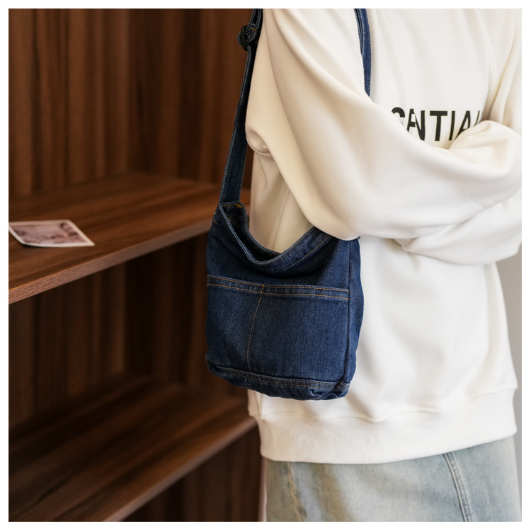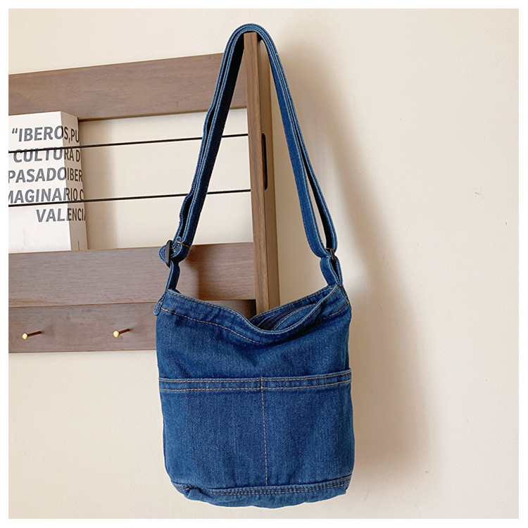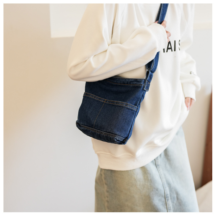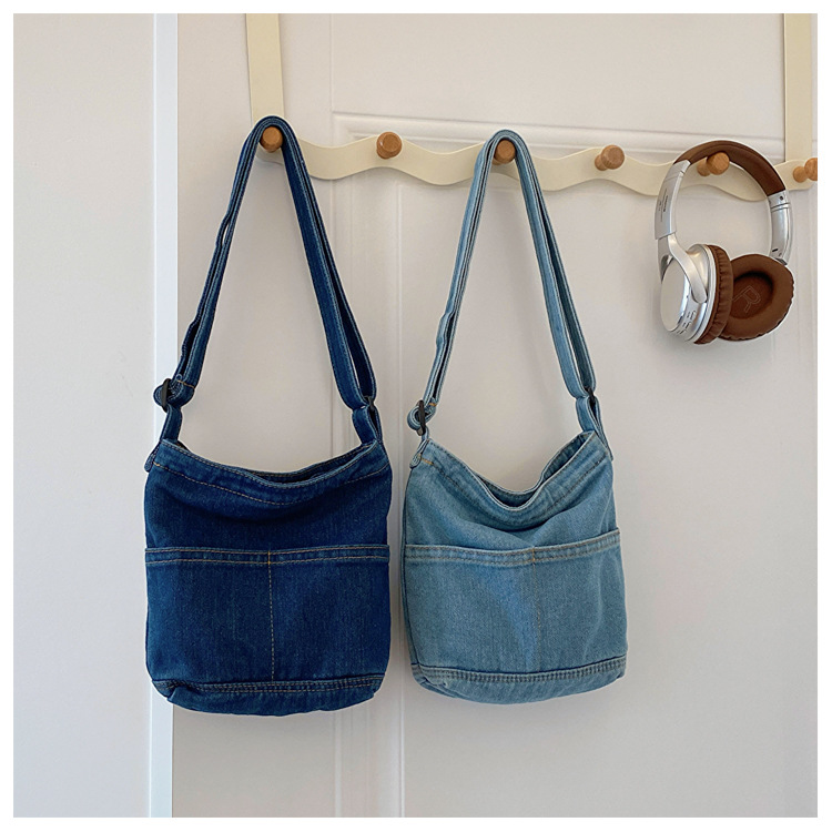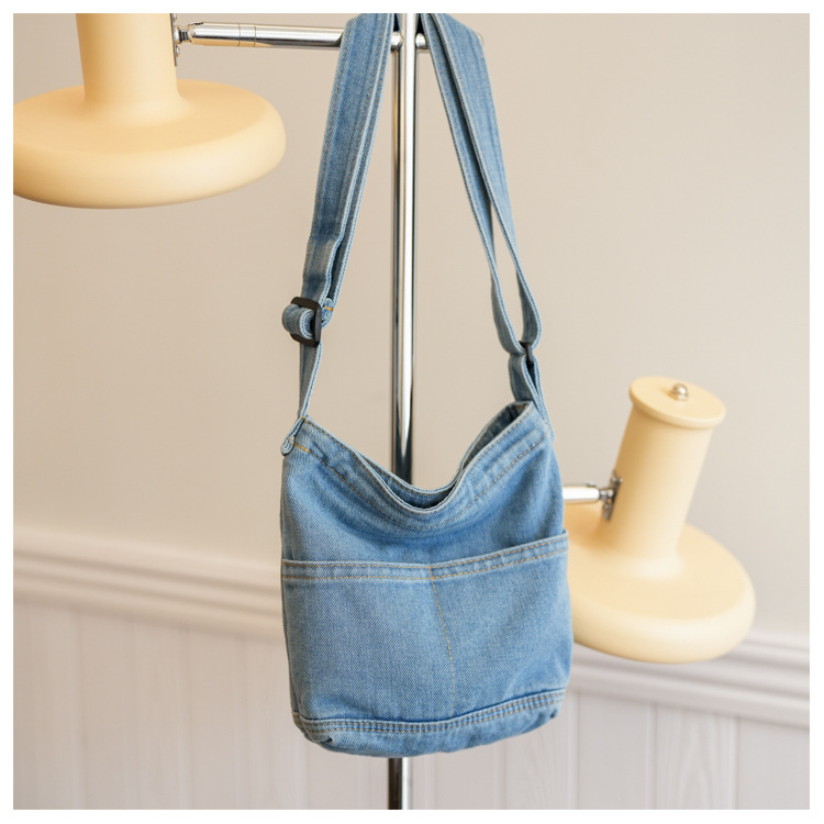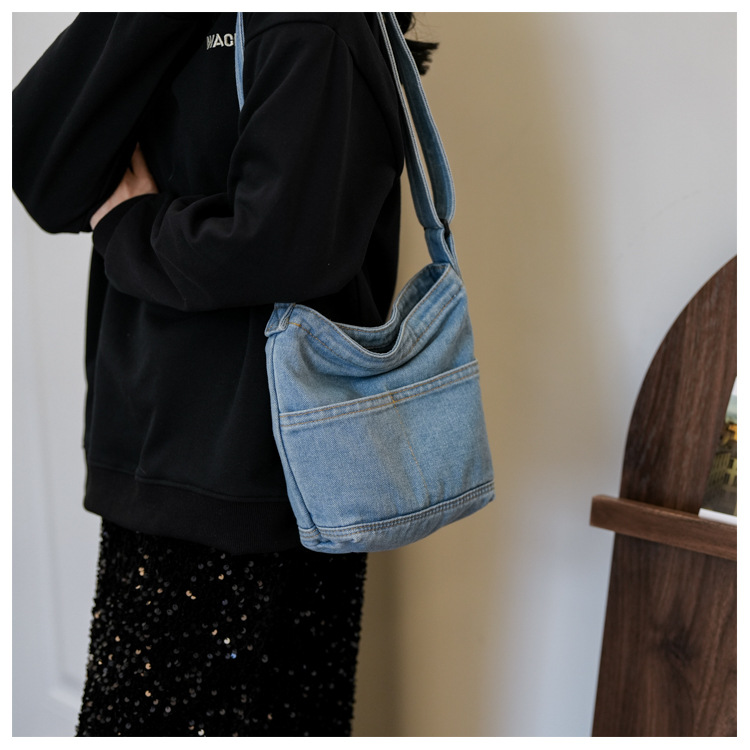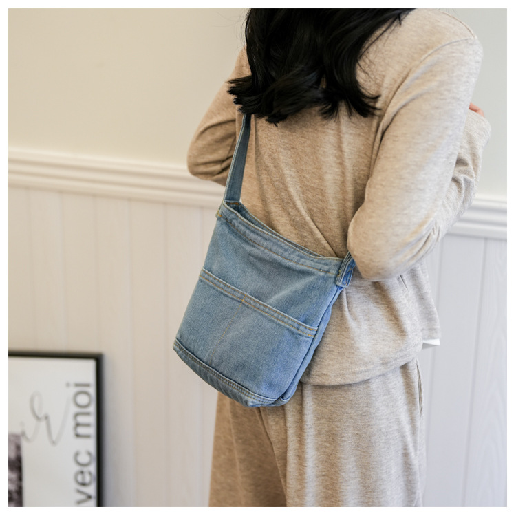 새로운 한국 스타일 Ins 세탁 데님 버킷 가방 여성 학생 어깨 가방 트렌디 한 올 매치 휴대 전화 크로스 바디 백스토어 가기