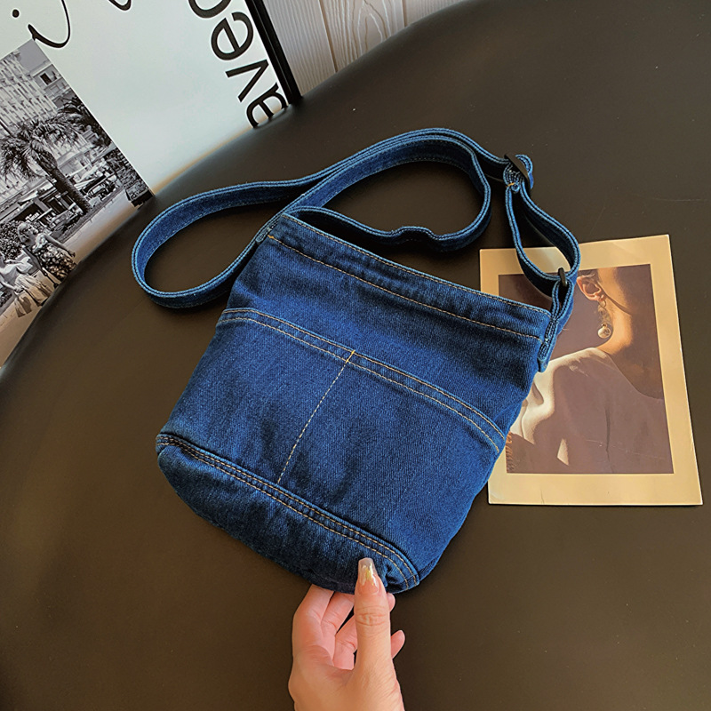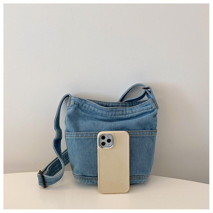 새로운 한국 스타일 Ins 세탁 데님 버킷 가방 여성 학생 어깨 가방 트렌디 한 올 매치 휴대 전화 크로스 바디 백
