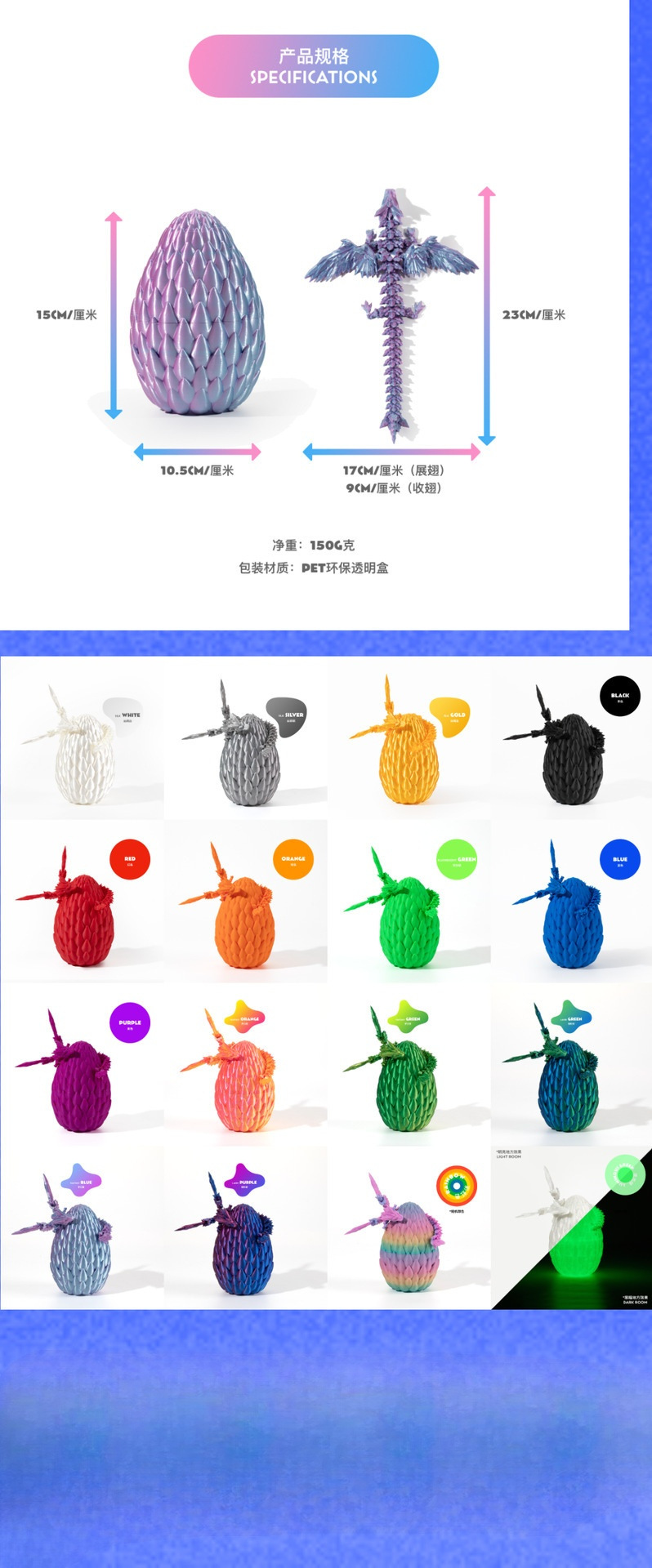 3D 인쇄 국경 핫 셀러 날개 비행 용 계란 세트 장식품 손으로 만든 선물 온라인 인기 창조적 인 중국 드래곤 크리에이티브