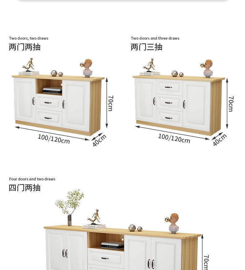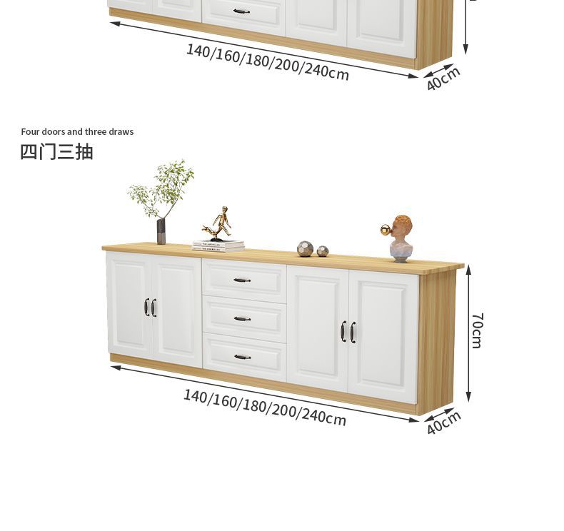 • 【200x40x70】도어 4개, 서랍 3개 [웜화이트]