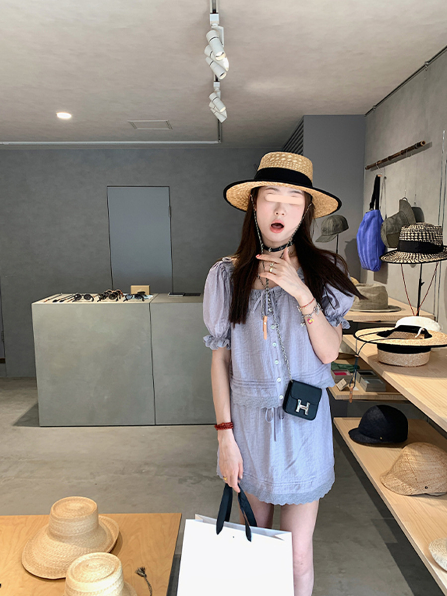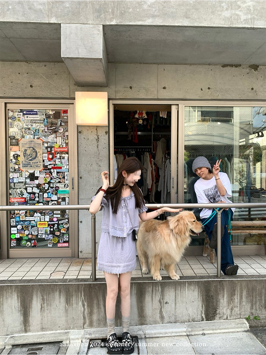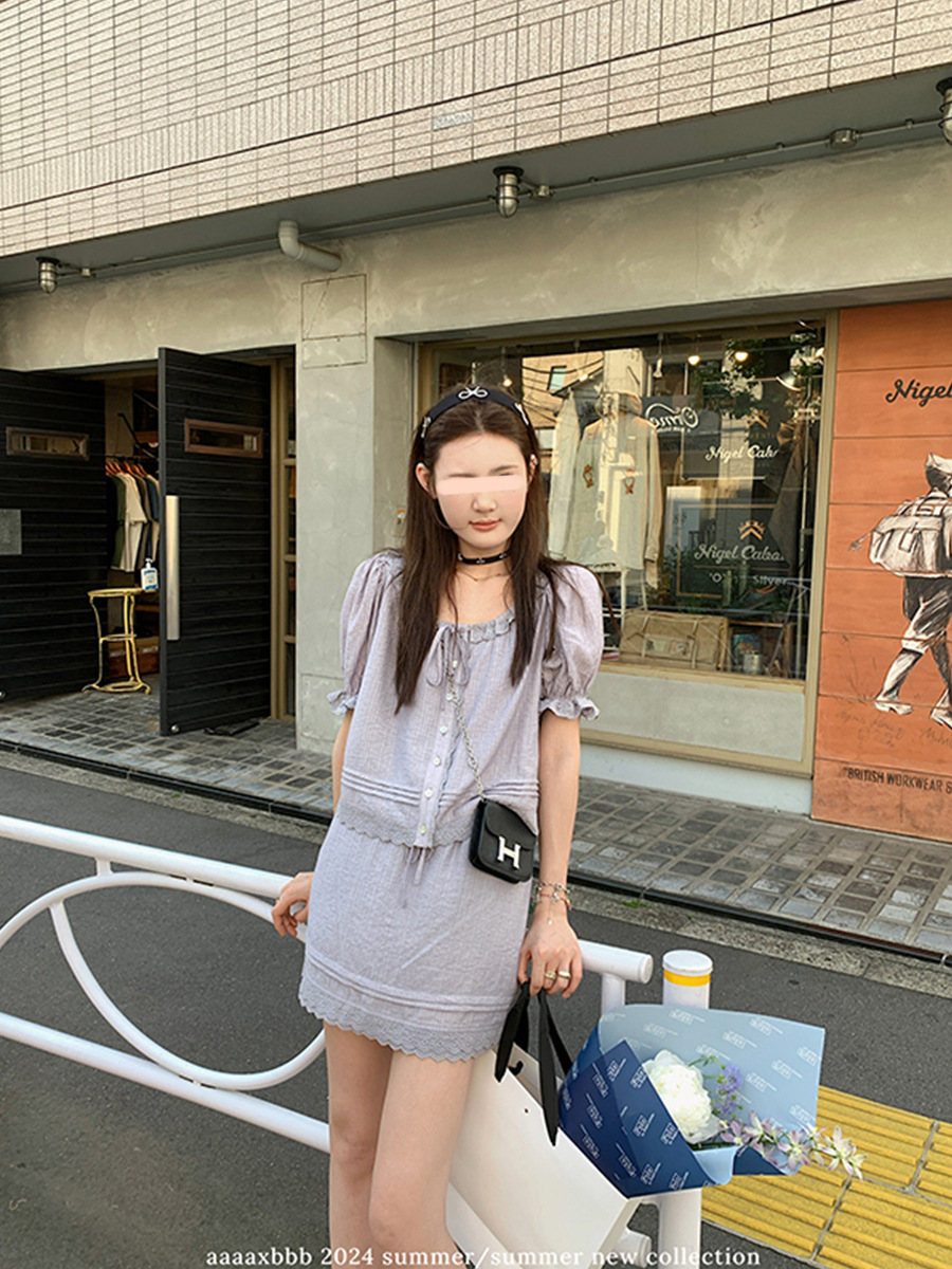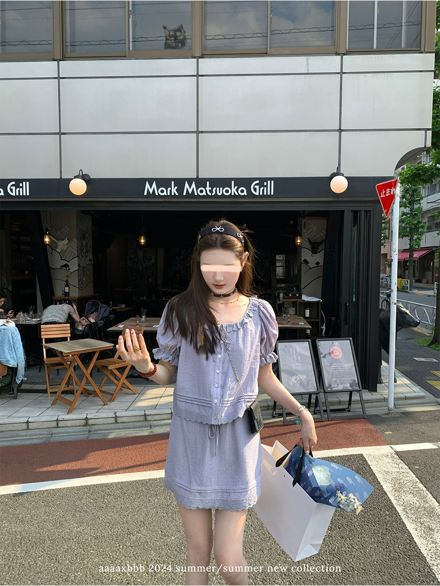 Aaaaxbb 개인 황혼 순수 레이스 세트 2 색 버블 슬리브 탑 드로우 스트링 스커트 투피스 세트스토어 가기