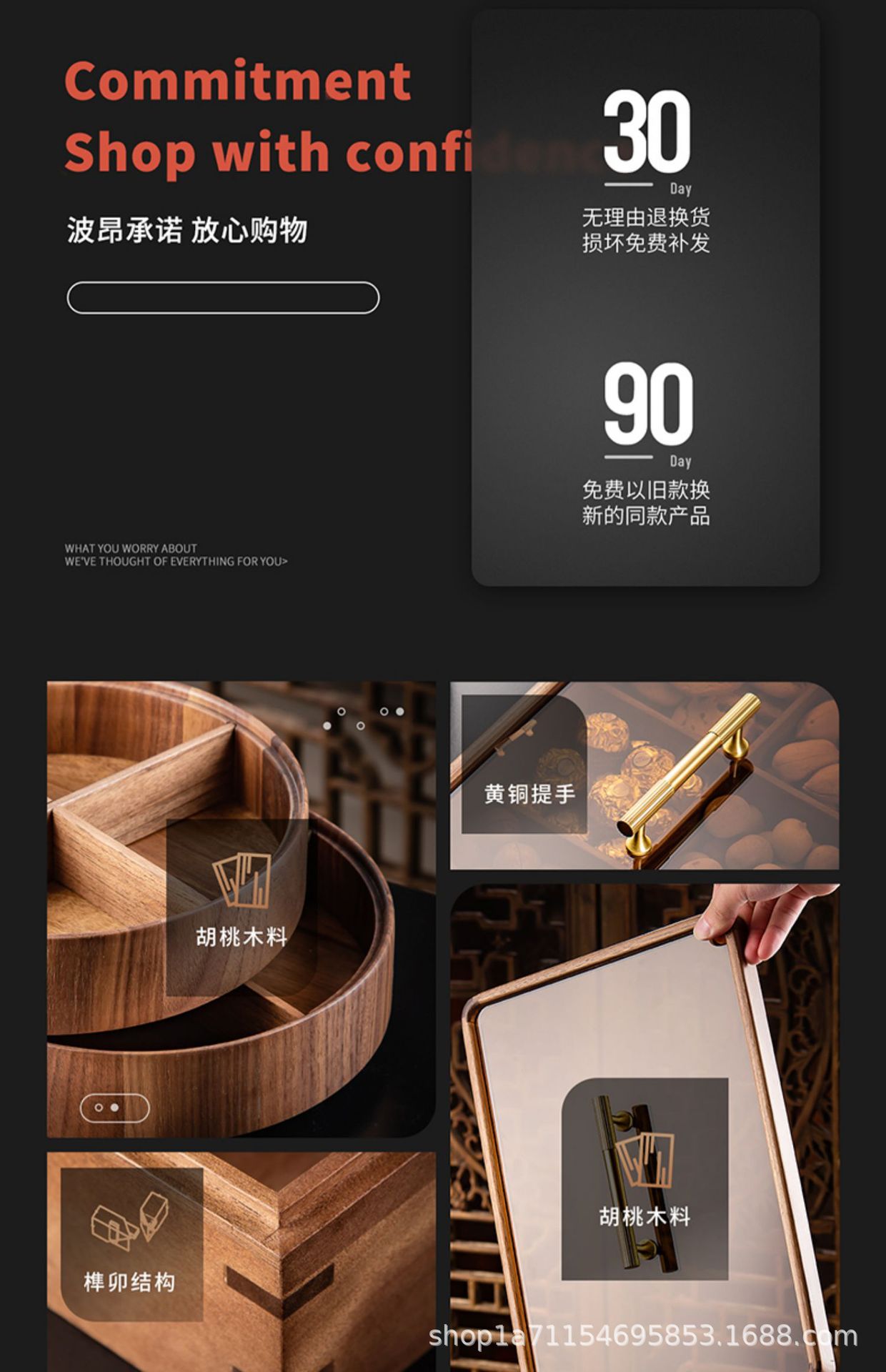 월넛 말린 과일 접시 거실 커피 테이블 가구 분할 간판 상쾌한 간식 너트 및 멜론 종자 저장 상자스토어 가기