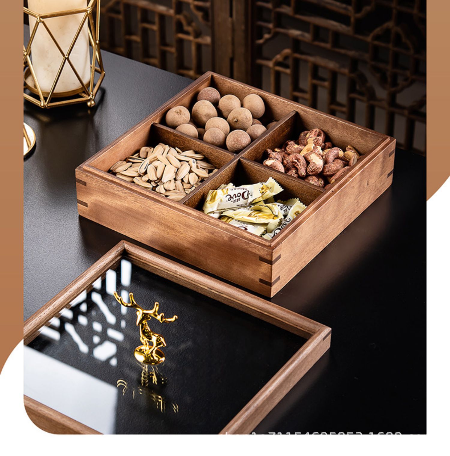 월넛 말린 과일 접시 거실 커피 테이블 가구 분할 간판 상쾌한 간식 너트 및 멜론 종자 저장 상자