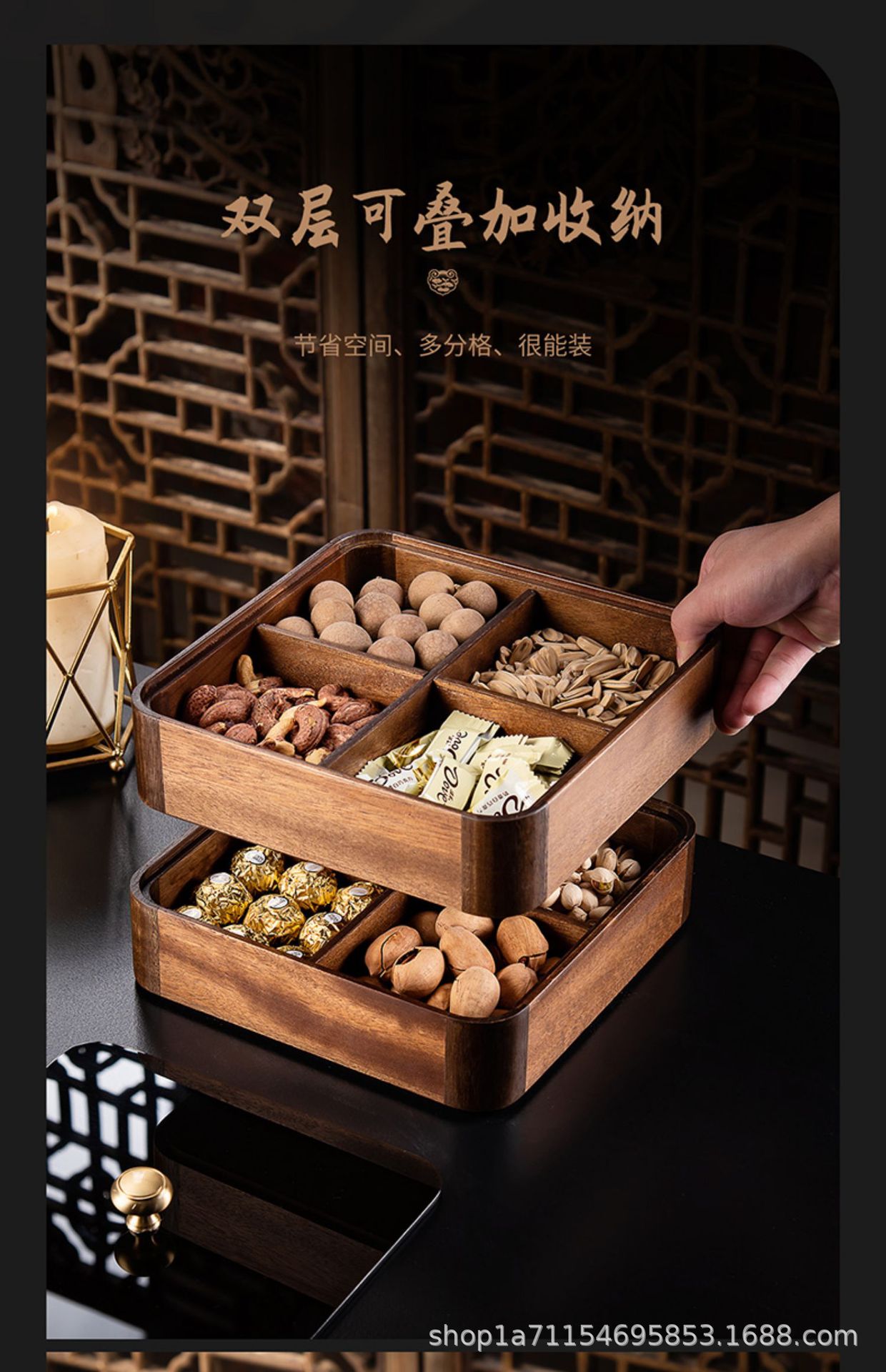 • 스퀘어 더블 레이어 호두 과일 플레이트