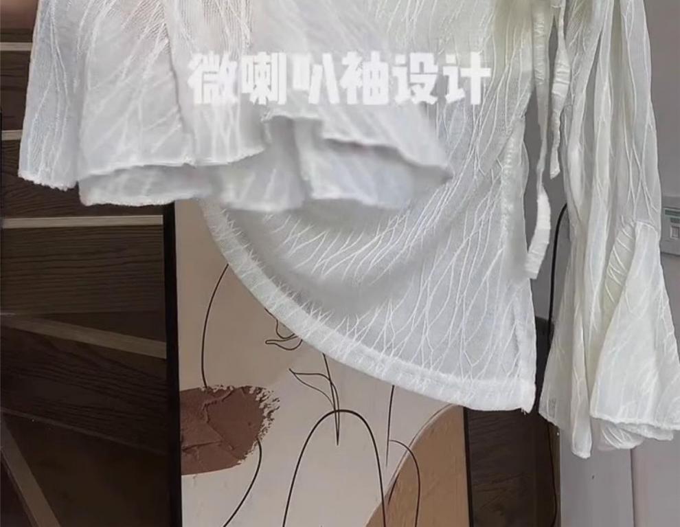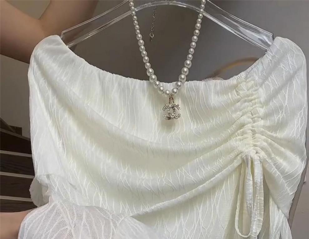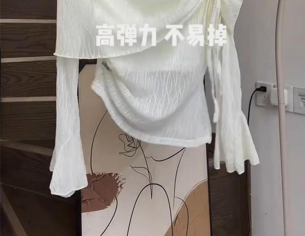 한국 스타일 작은 옷을 입고 세련되고 아름다운 디자인 센스 주름 끈 어깨 불규칙한 긴 소매 탑