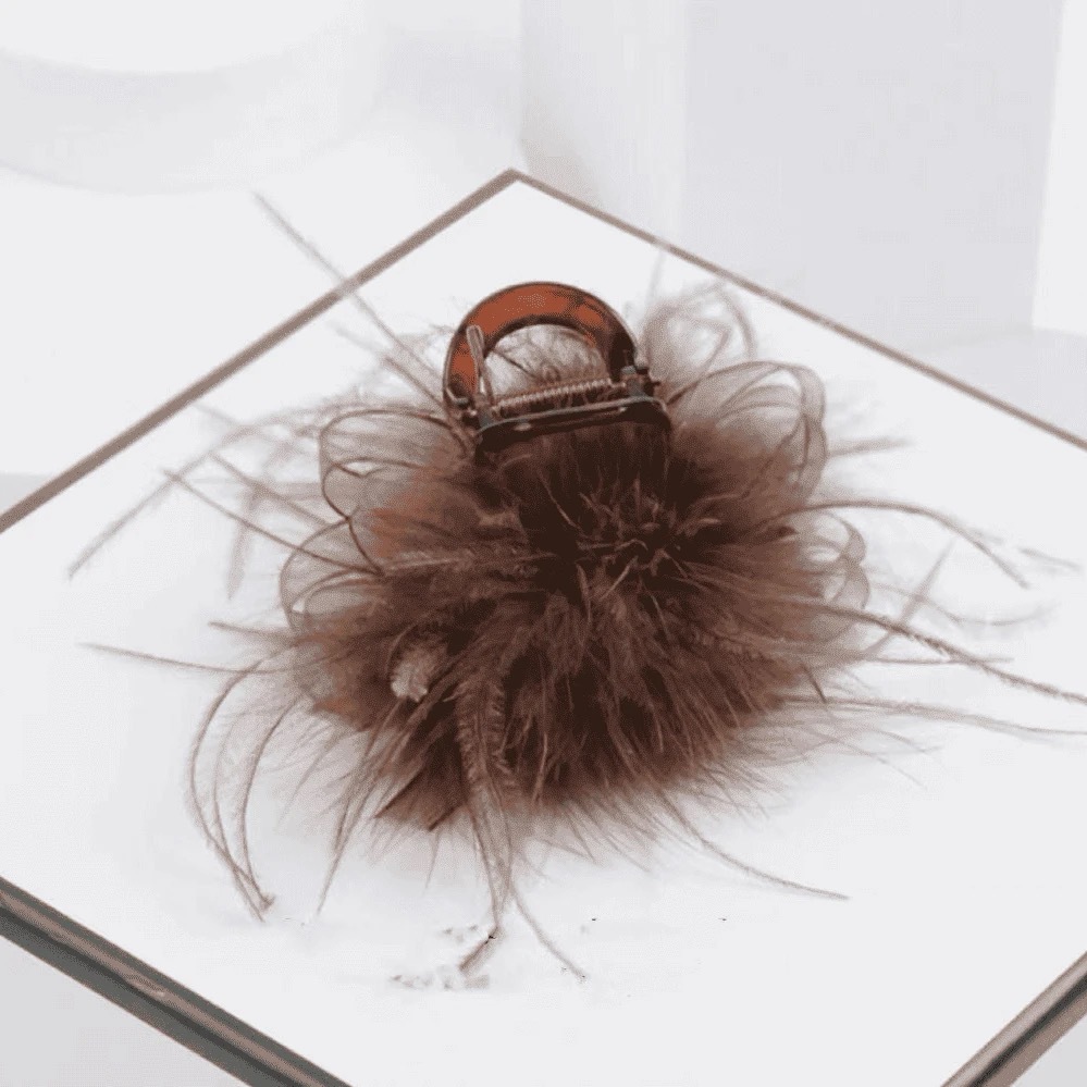 • 갈색 칠면조 깃털 작은 머리핀