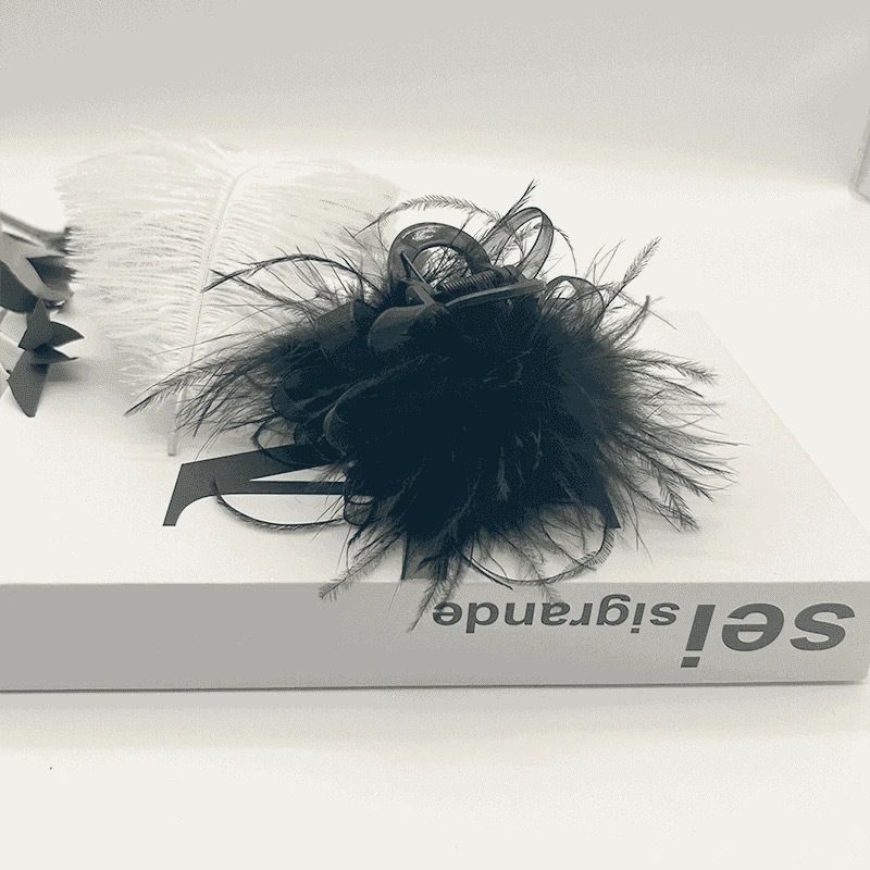 • 검은색 칠면조 깃털 미니 8자 헤어 클립
