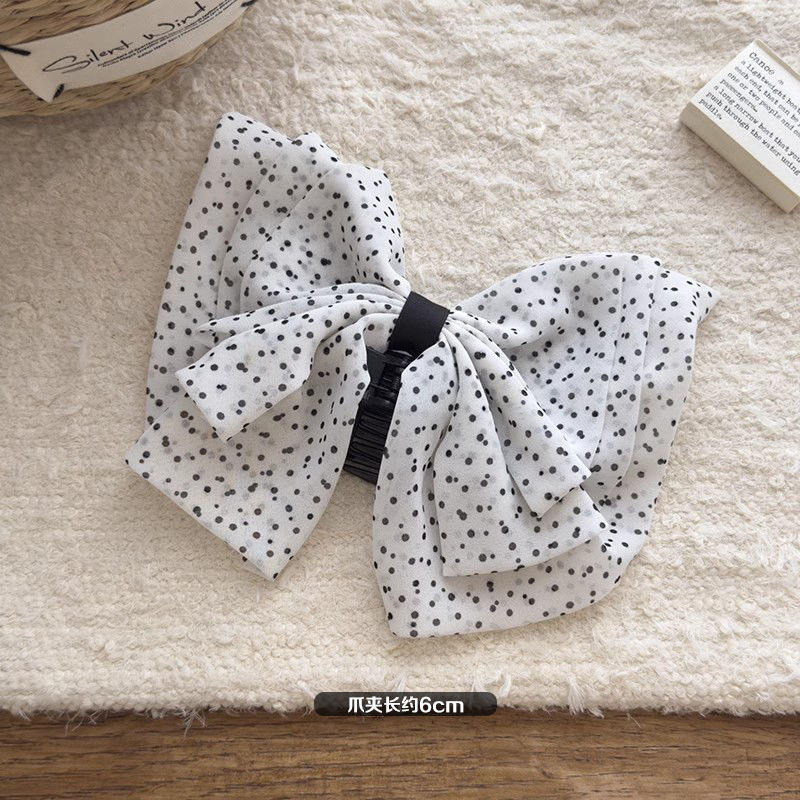 • 흰색 물방울무늬 리본 머리핀