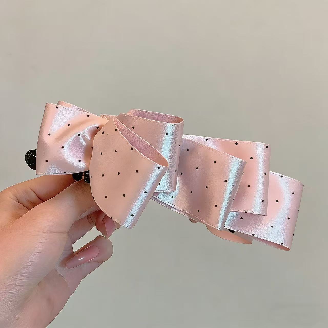 • 검정색 물방울무늬 리본 머리핀